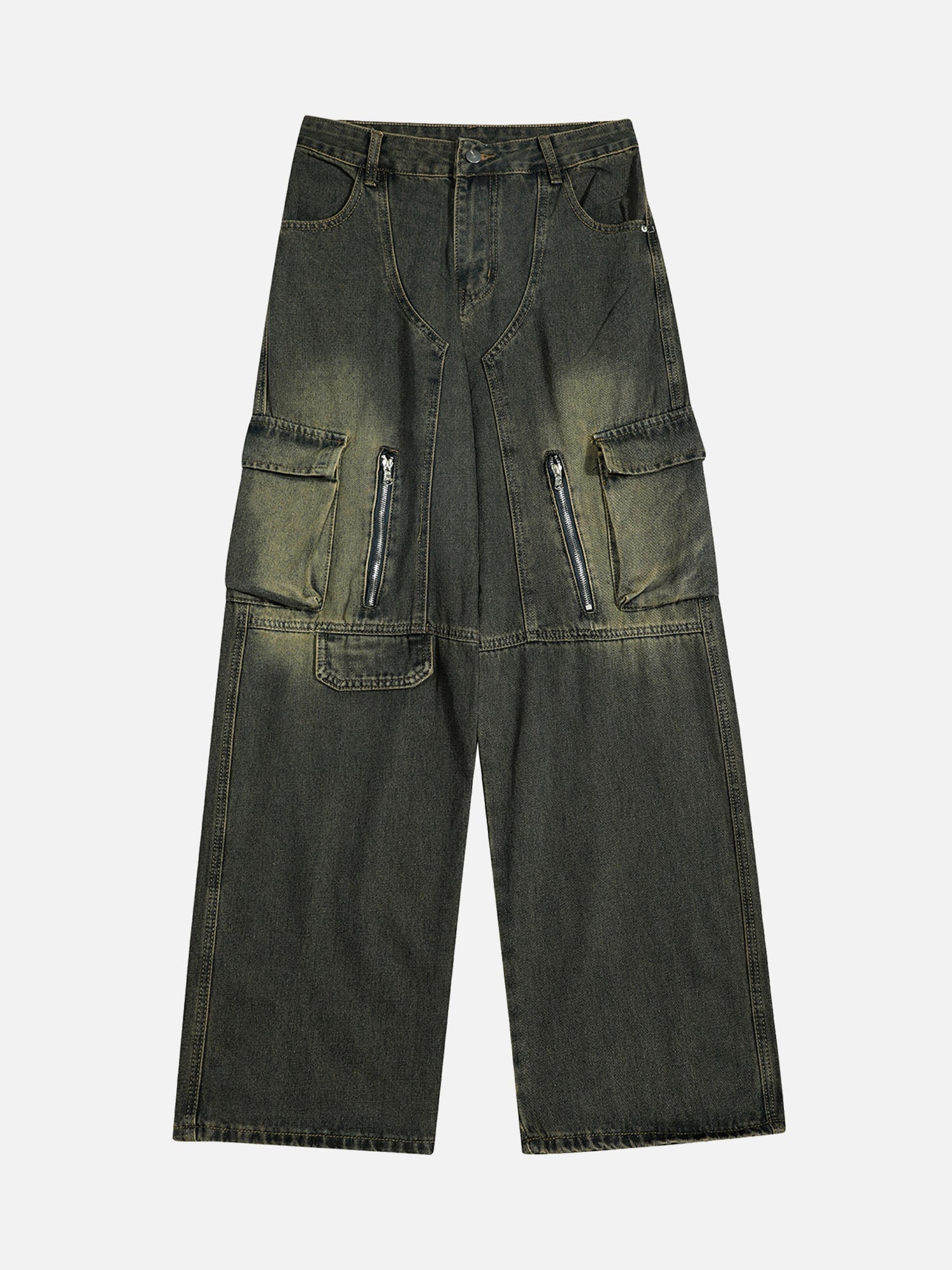 American Retro Workwear-Jeans mit mehreren Taschen und verwaschener Waschung
