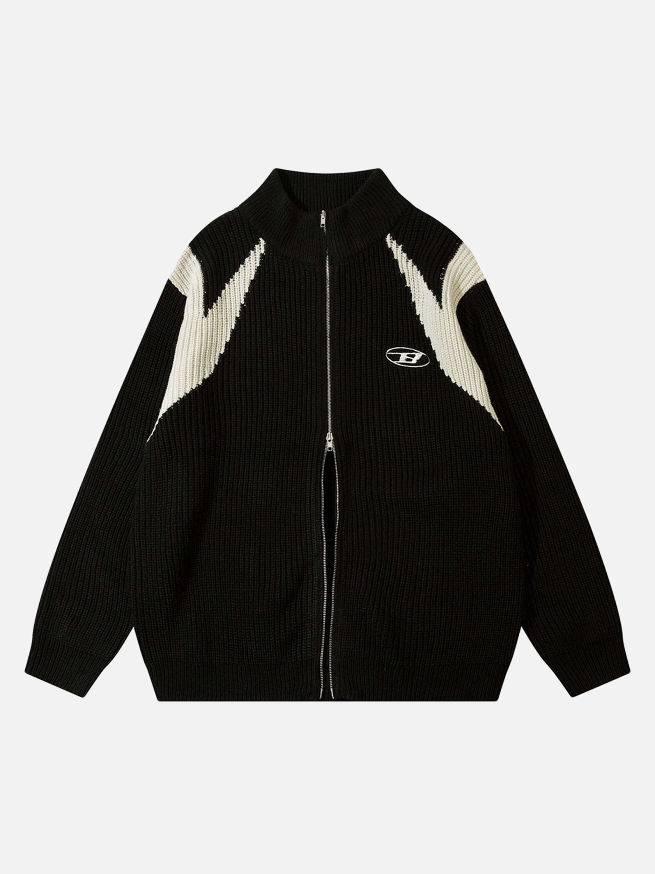 Strickjacke im amerikanischen Stil mit Farbblockierung und Reißverschluss, locker gestrickt-1509