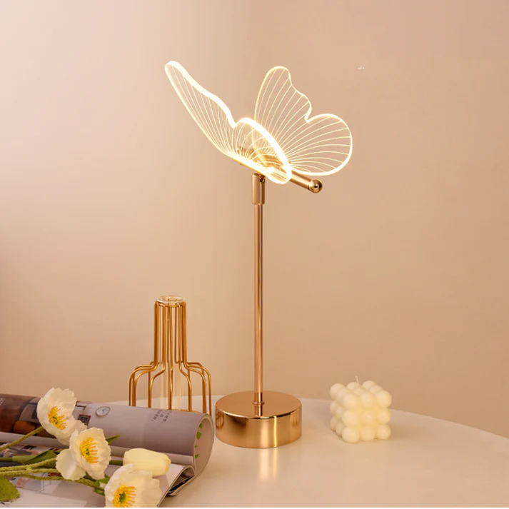 Verwandeln Sie Ihr Schlafzimmer mit dieser wunderschönen Schmetterlings-Nachttischlampe in eine traumhafte Oase. Die aus Acryl gefertigte Lampe verleiht jedem Raum mit ihrem einzigartigen LED-Schmetterlingsmotiv ein verträumtes Flair. Freuen Sie sich auf süße Träume!