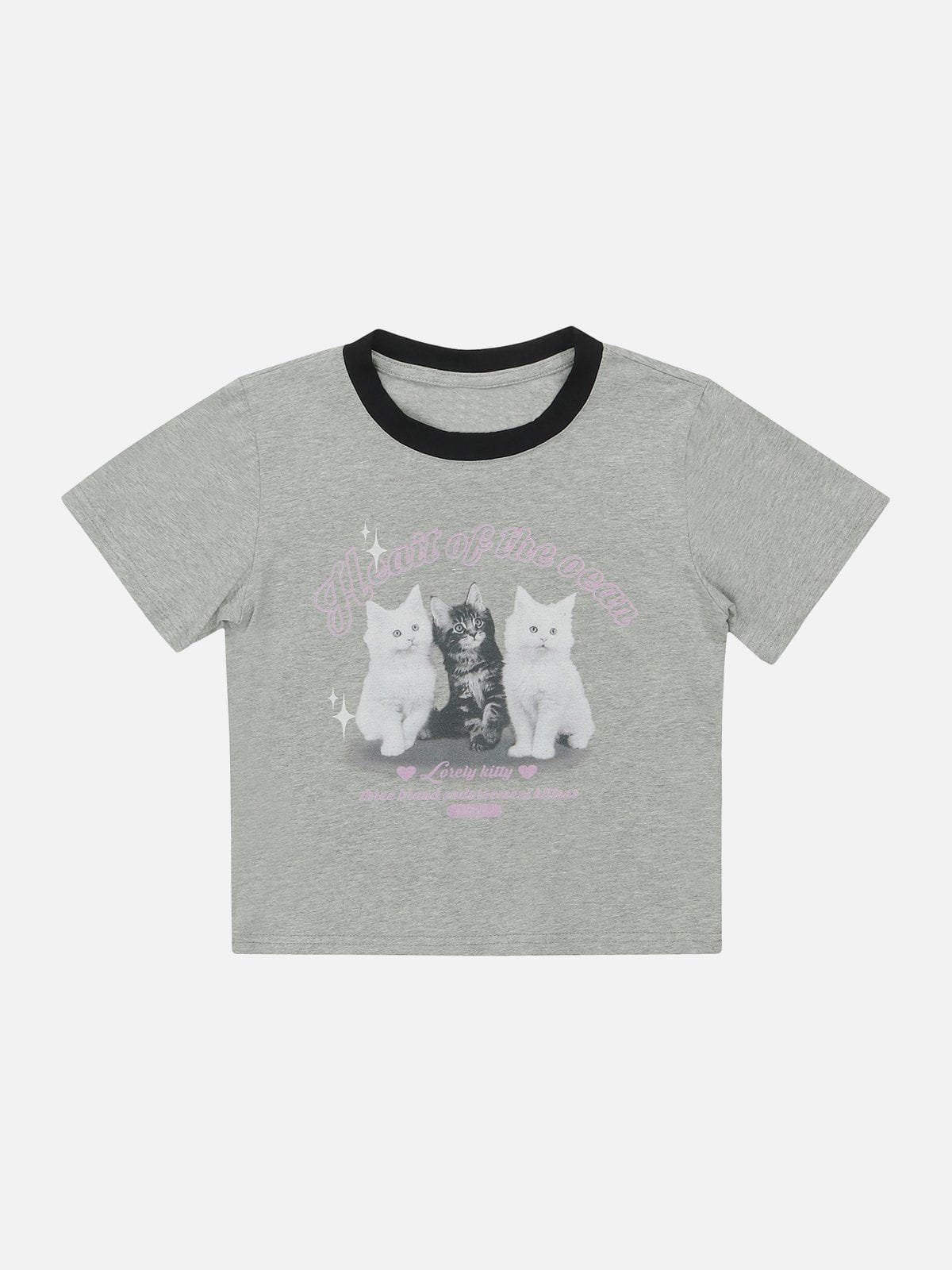 T-Shirt mit Katzen- und Stern-Print