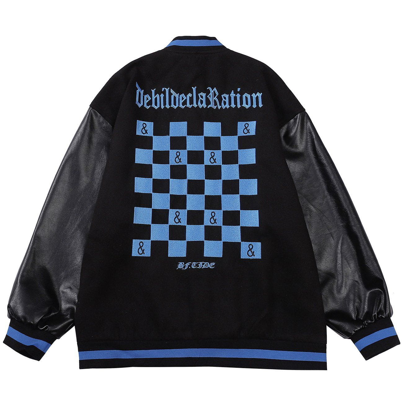 Wintermantel mit gestickten Buchstaben und Schachbrettmuster