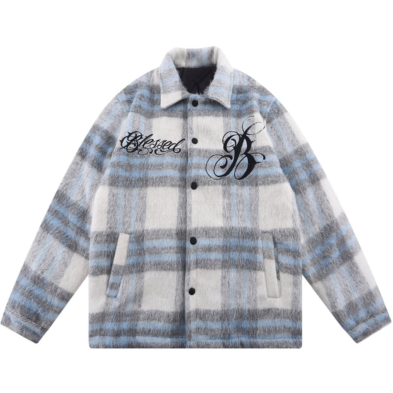 Wintermantel mit gestickten Buchstaben und Gittermuster