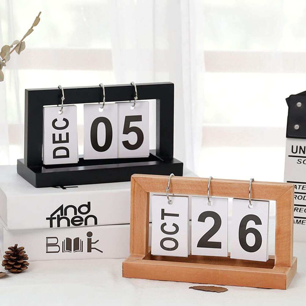 Dekorieren Sie Ihren Schreibtisch mit diesem hölzernen Blätterkalender. Behalten Sie das Datum einfach und stilvoll im Blick. Die perfekte Ergänzung für Räume im Pastell-/koreanischen Stil.