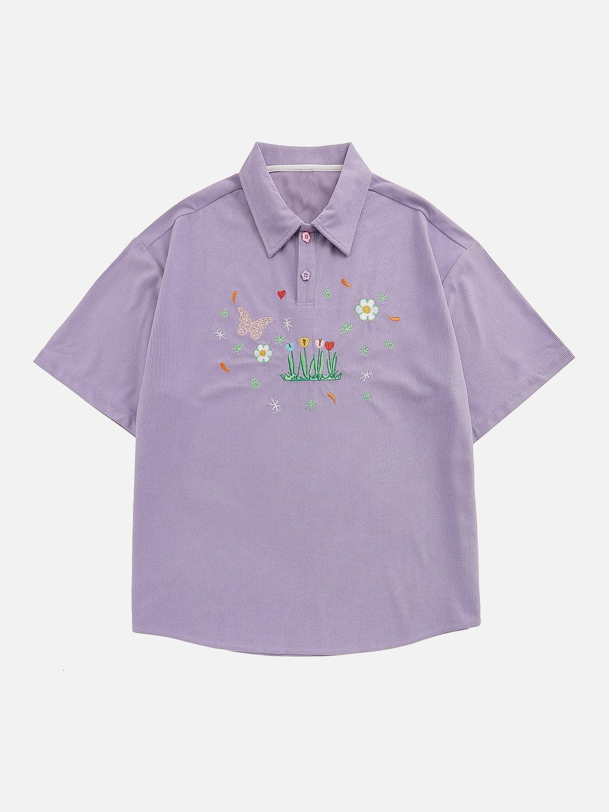 Poloshirt mit Blumen- und Schmetterlingsstickerei