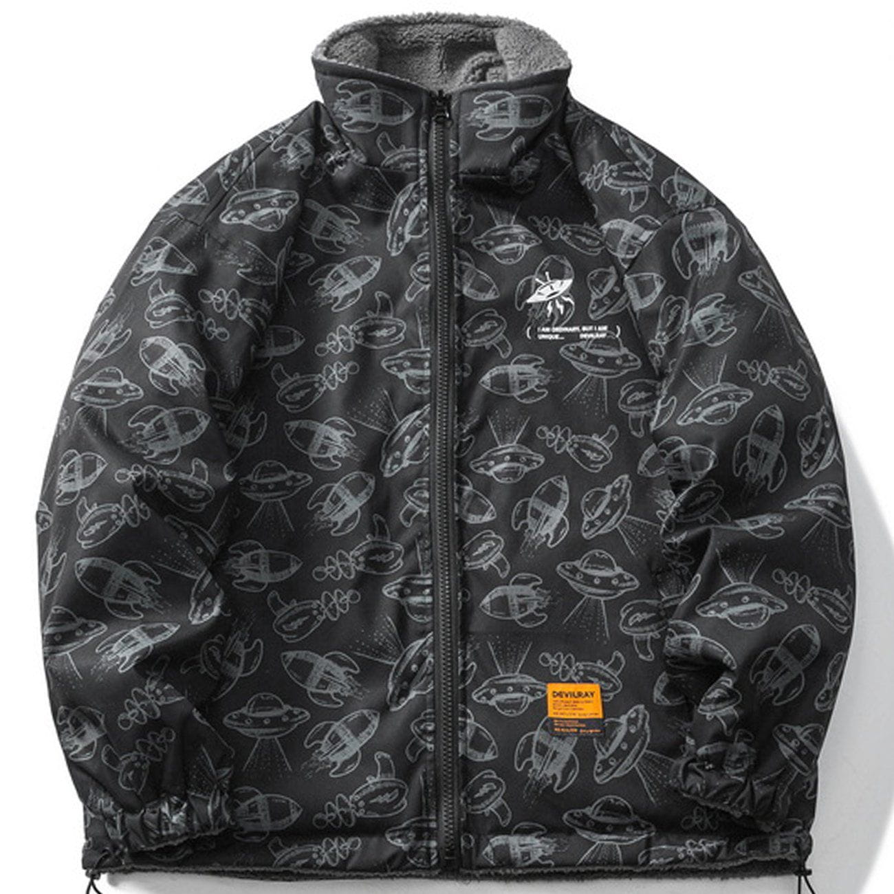 Doppelseitiger Wintermantel mit UFO-Volldruck