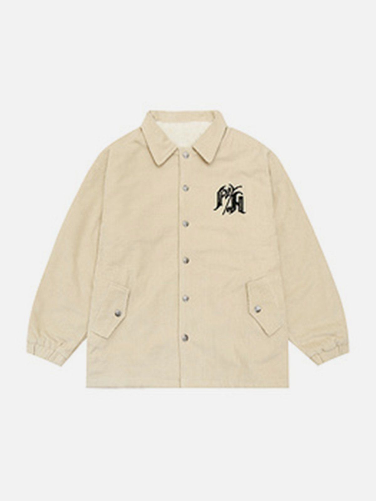 Wintermantel aus Cord mit gotischer Monogramm-Stickerei