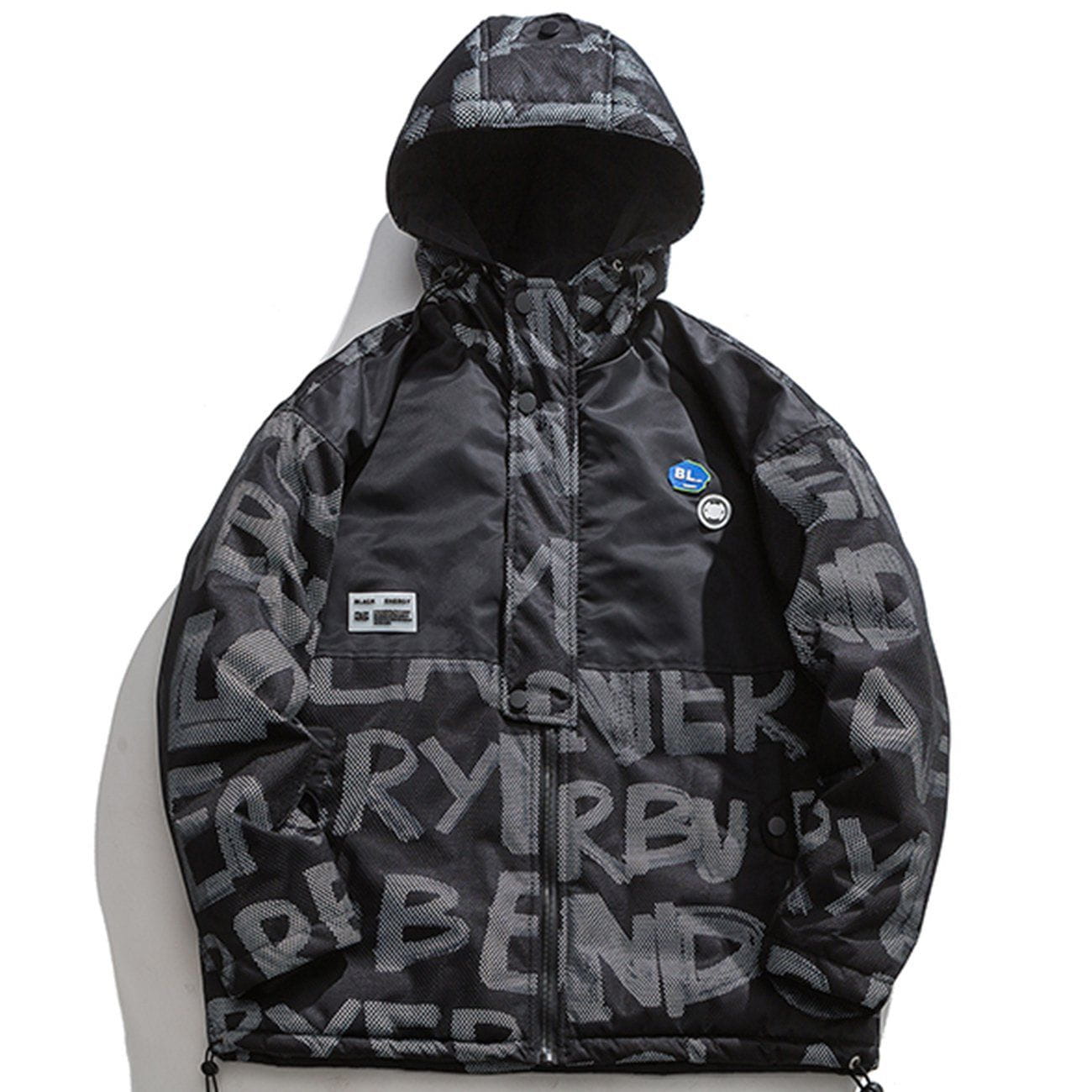 Wintermantel mit Kapuze und Graffiti-Buchstaben