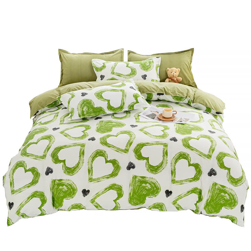 Bringen Sie Ihr Schlafzimmer mit diesem Bettwäscheset mit handgezeichnetem, süßem Herzmuster in Salbeigrün auf ein neues Niveau. Passt perfekt zu fast jeder ästhetischen Raumdekoration.