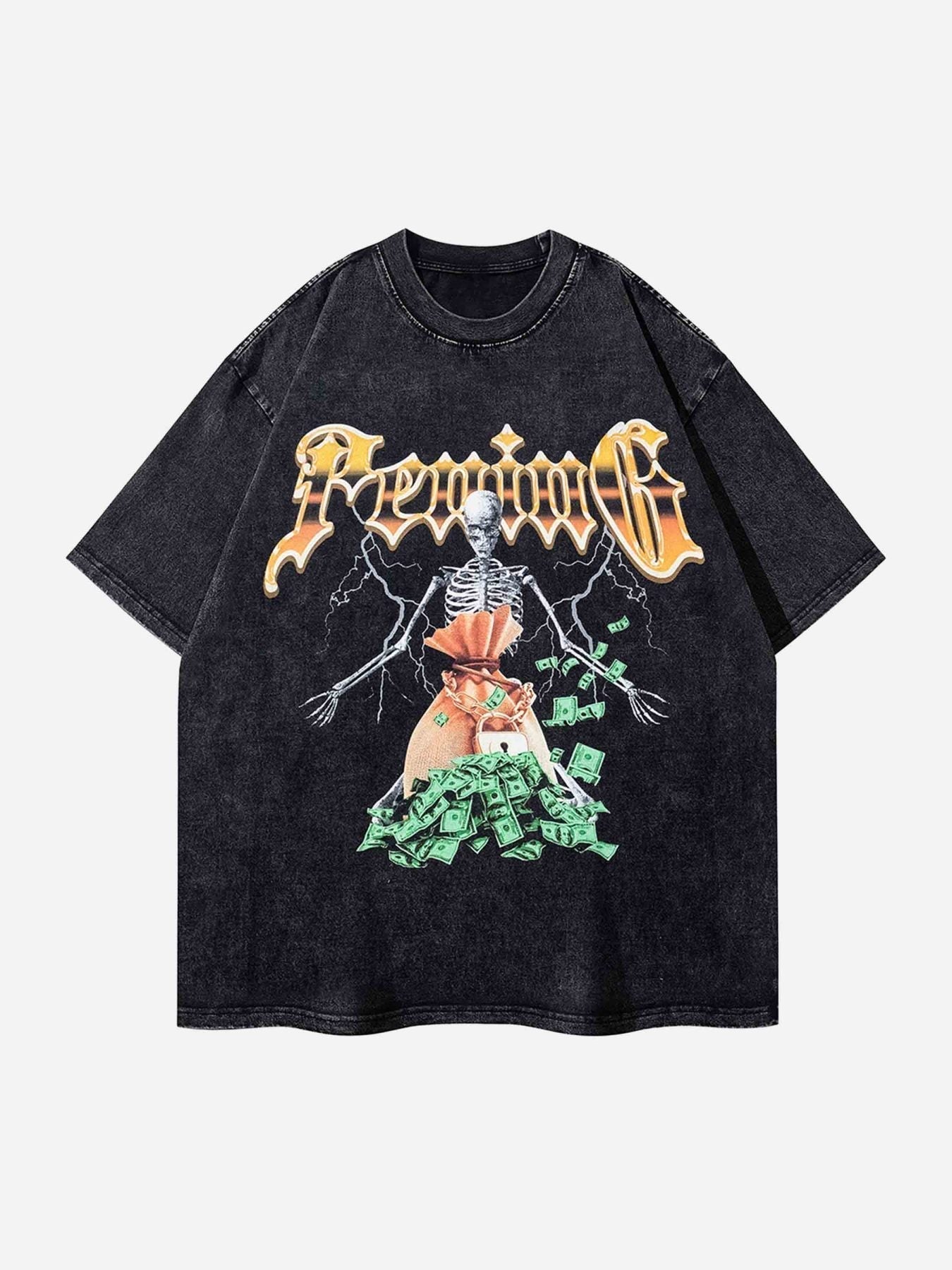 T-Shirt mit Hip-Hop-Totenkopf-Print