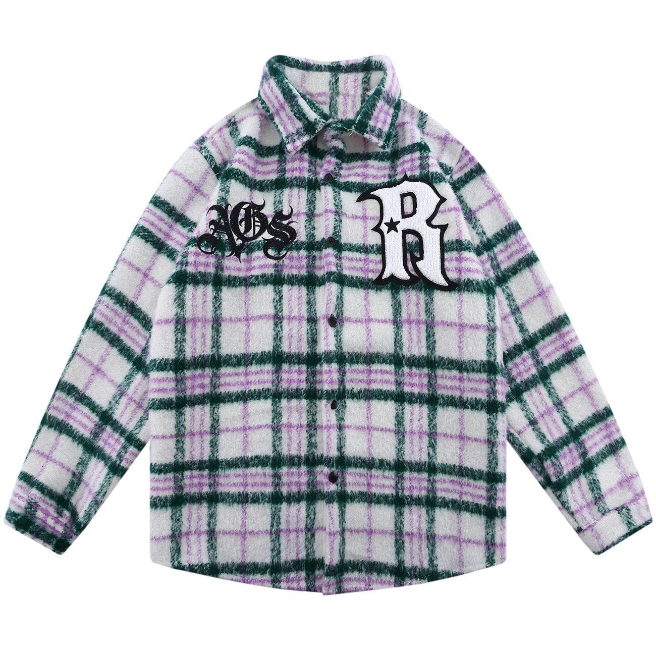 Langarmhemd mit Buchstaben-Handtuchstickerei und Gitter