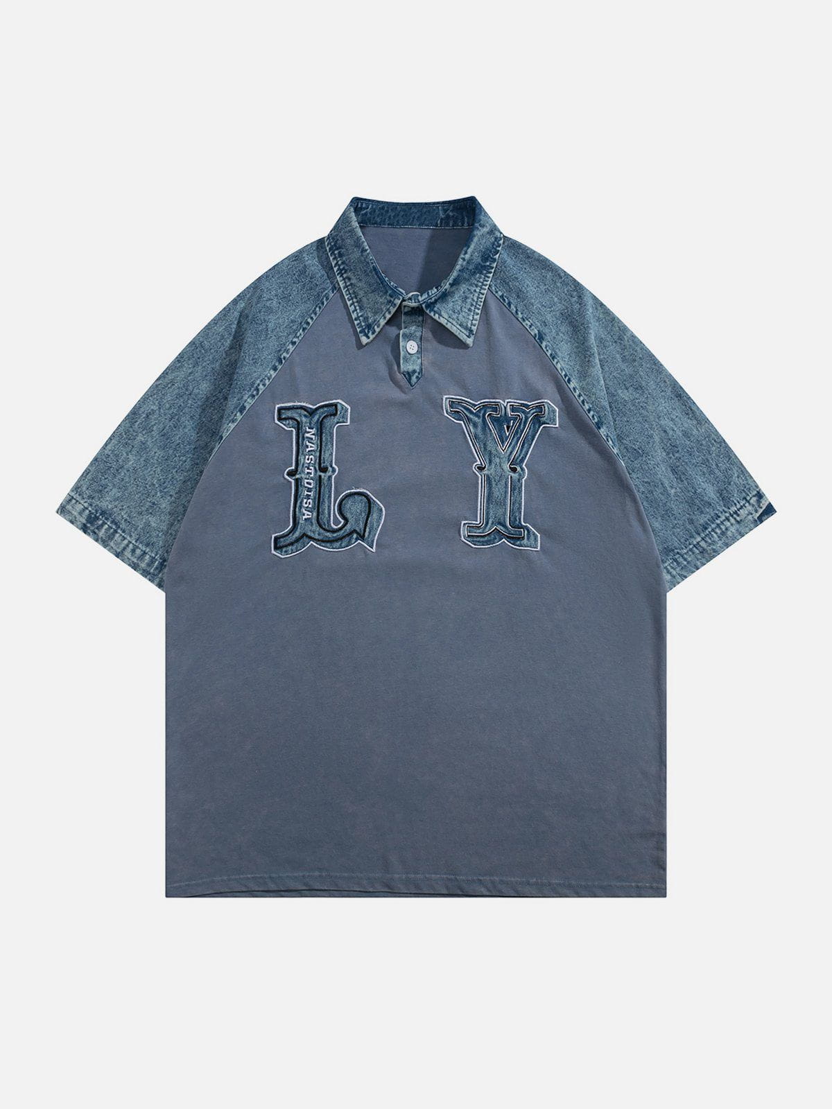 T-Shirt mit LY-Buchstaben-Patchwork-Polokragen