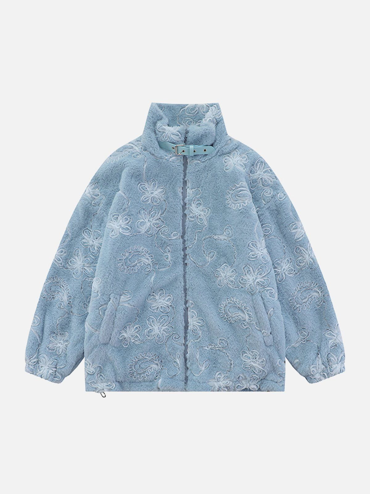 Wintermantel aus Mesh-Plüsch mit 3D-Blumenmuster