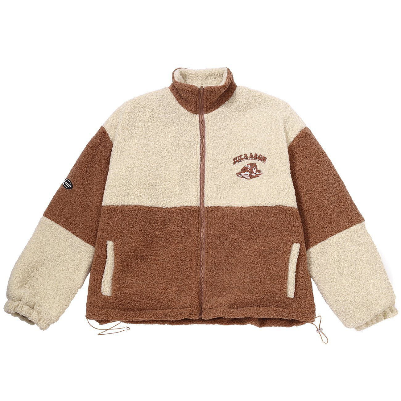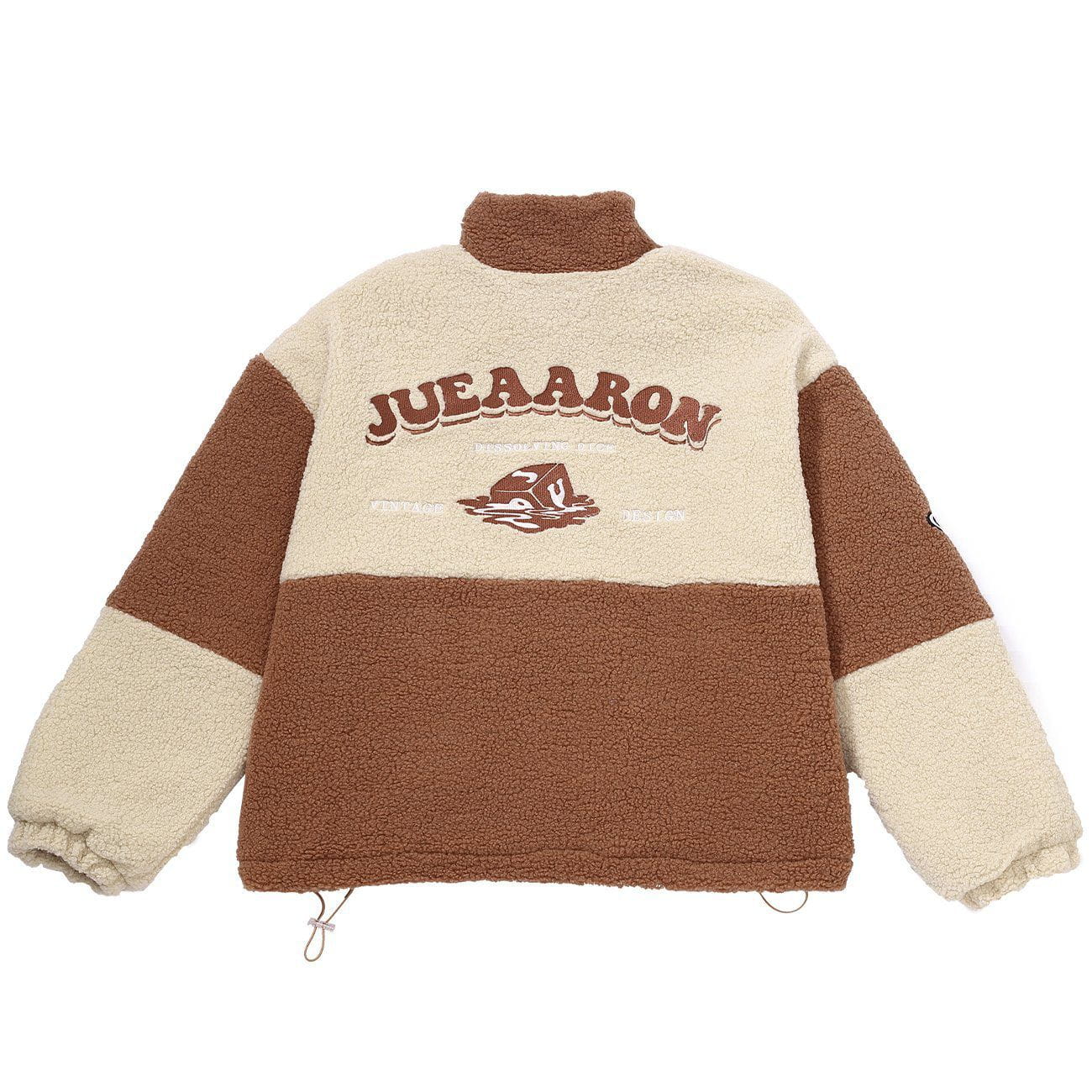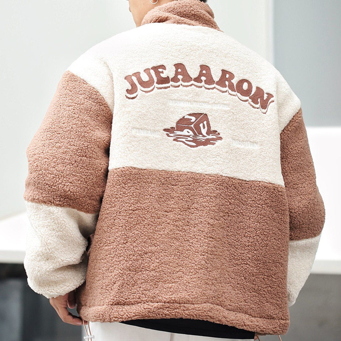 Sherpa-Wintermantel mit Monogramm-Stickerei in Kontrastfarbe