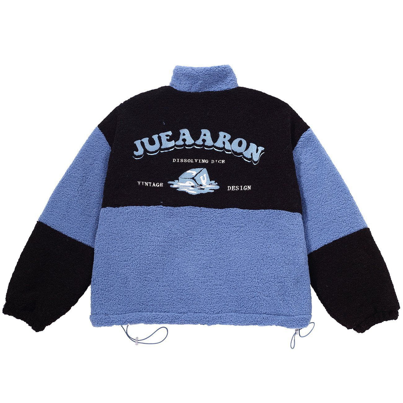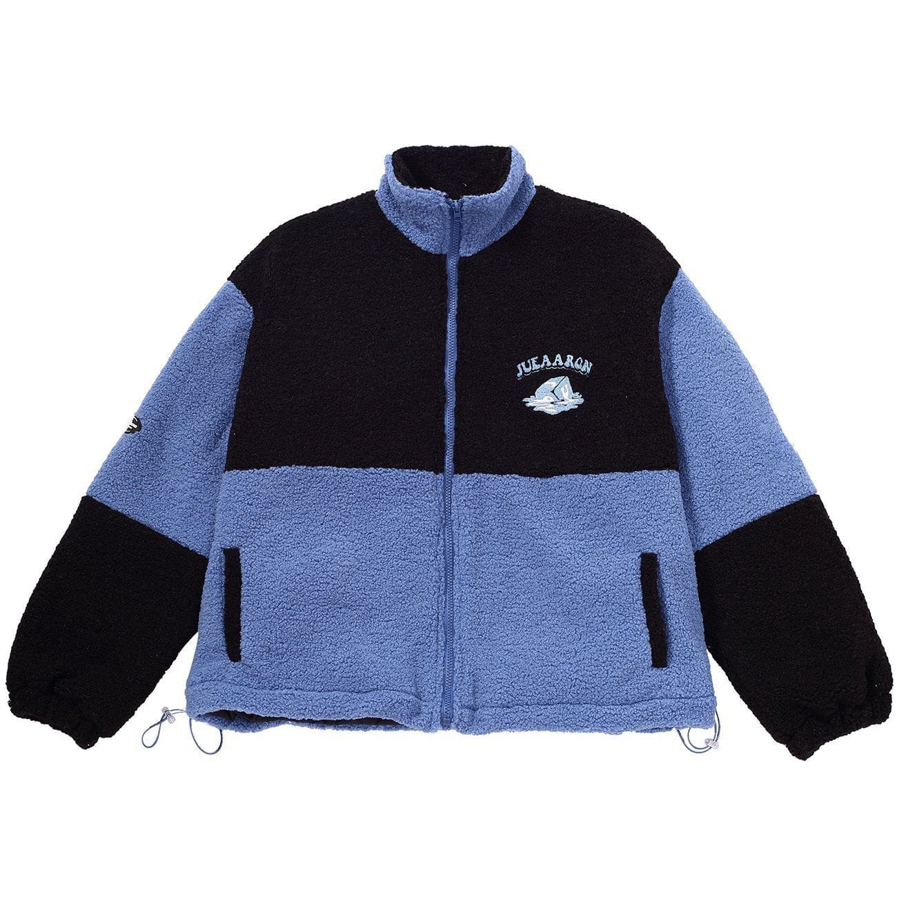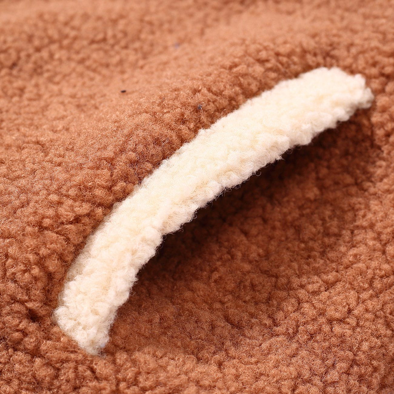 Sherpa-Wintermantel mit Monogramm-Stickerei in Kontrastfarbe