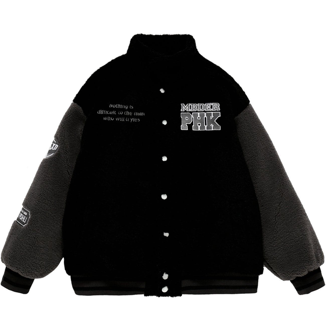 Sherpa-Wintermantel mit Patchwork-Ärmeln