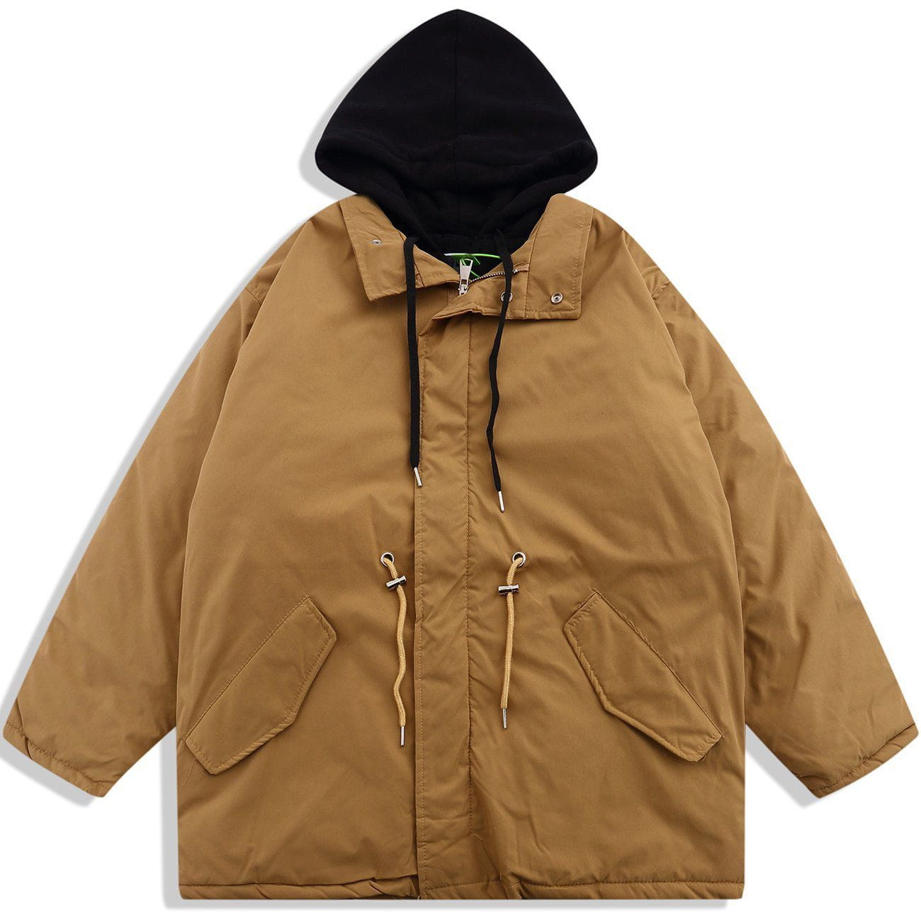 Wintermantel mit Patchwork-Spleißen und Kapuze