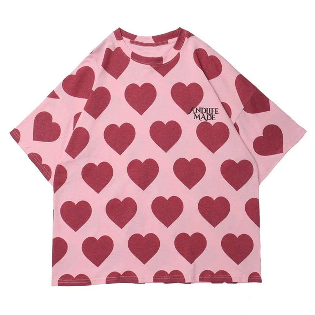 Baumwoll-T-Shirt mit Pfirsichherz-Print