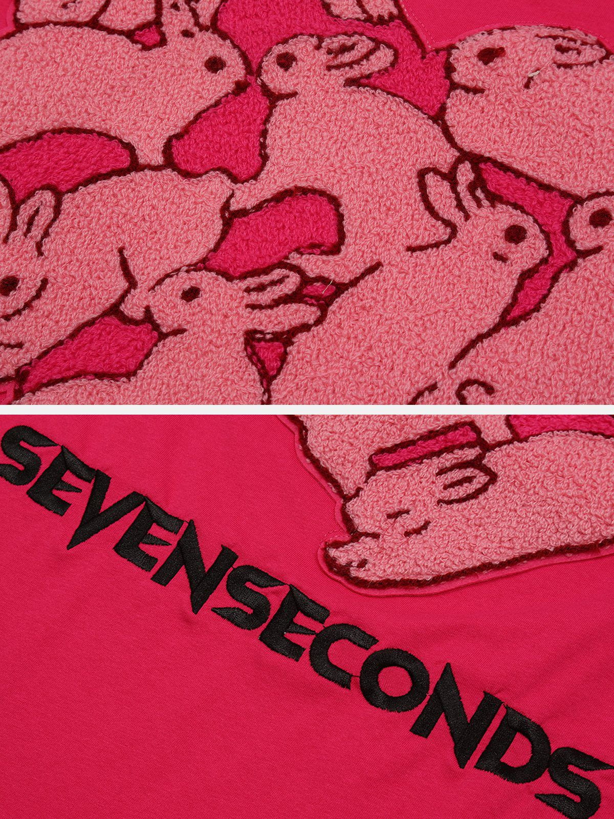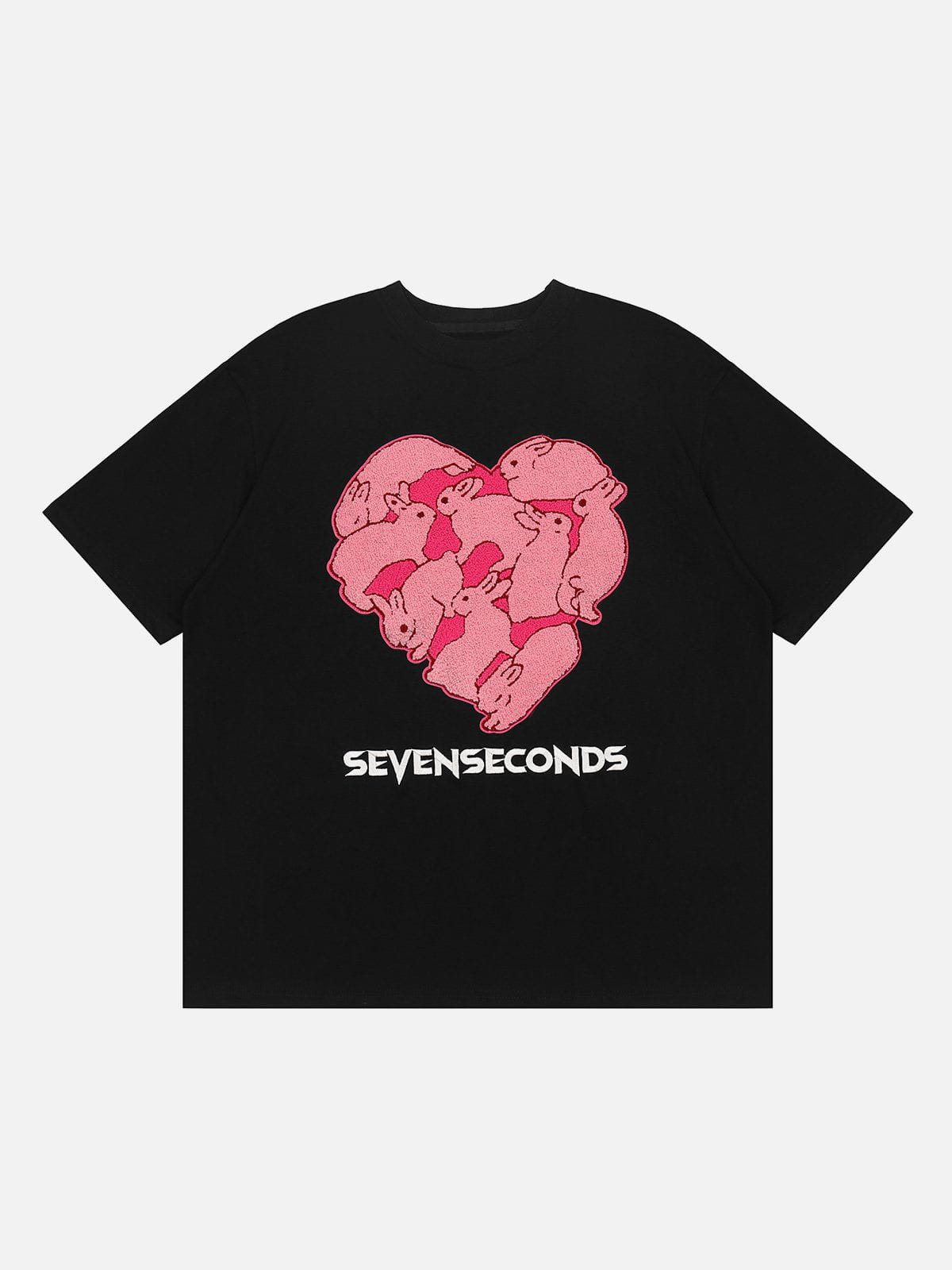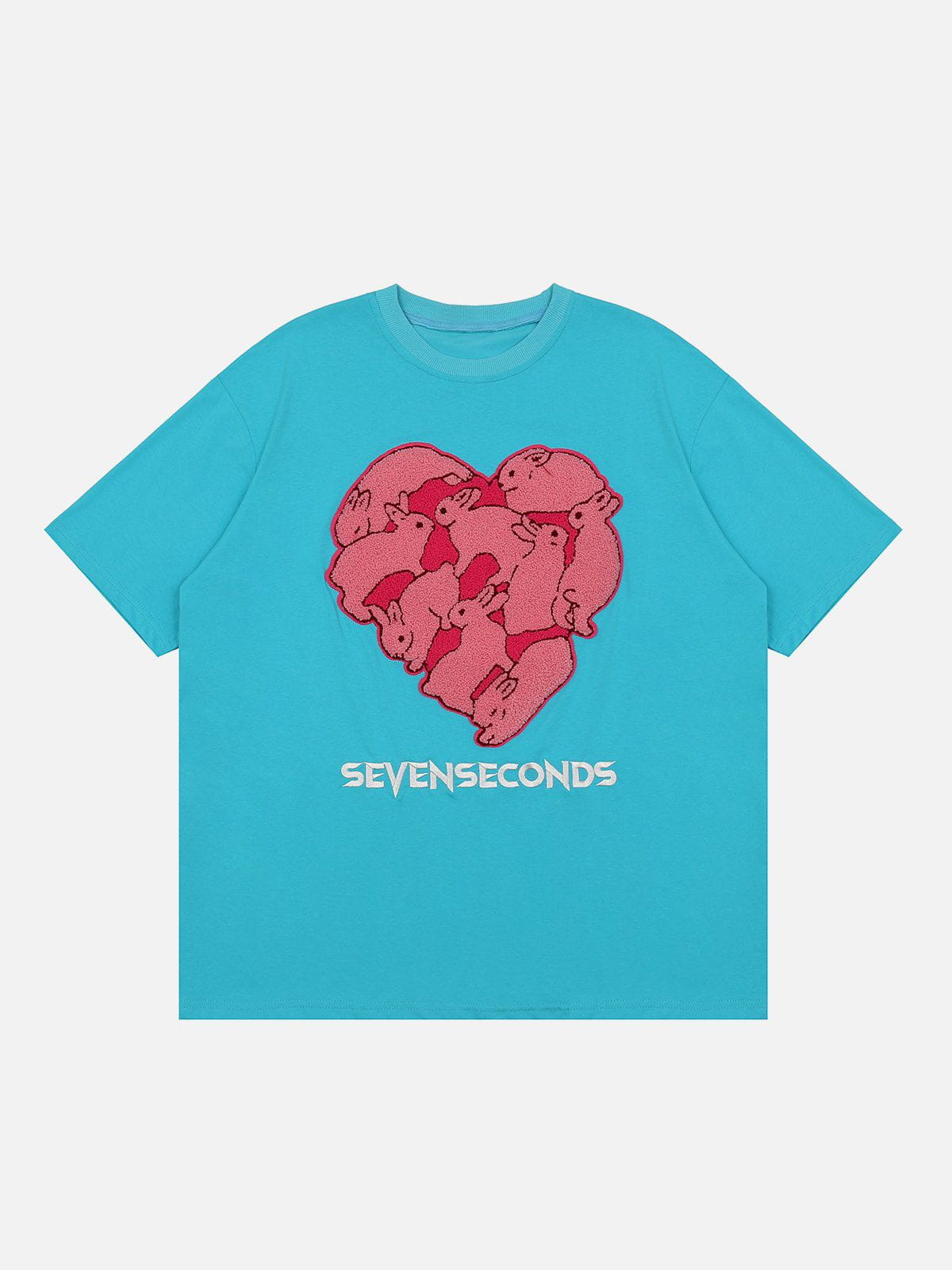 Kaninchen Handtuch Stickerei Herz Elemente T-Shirt