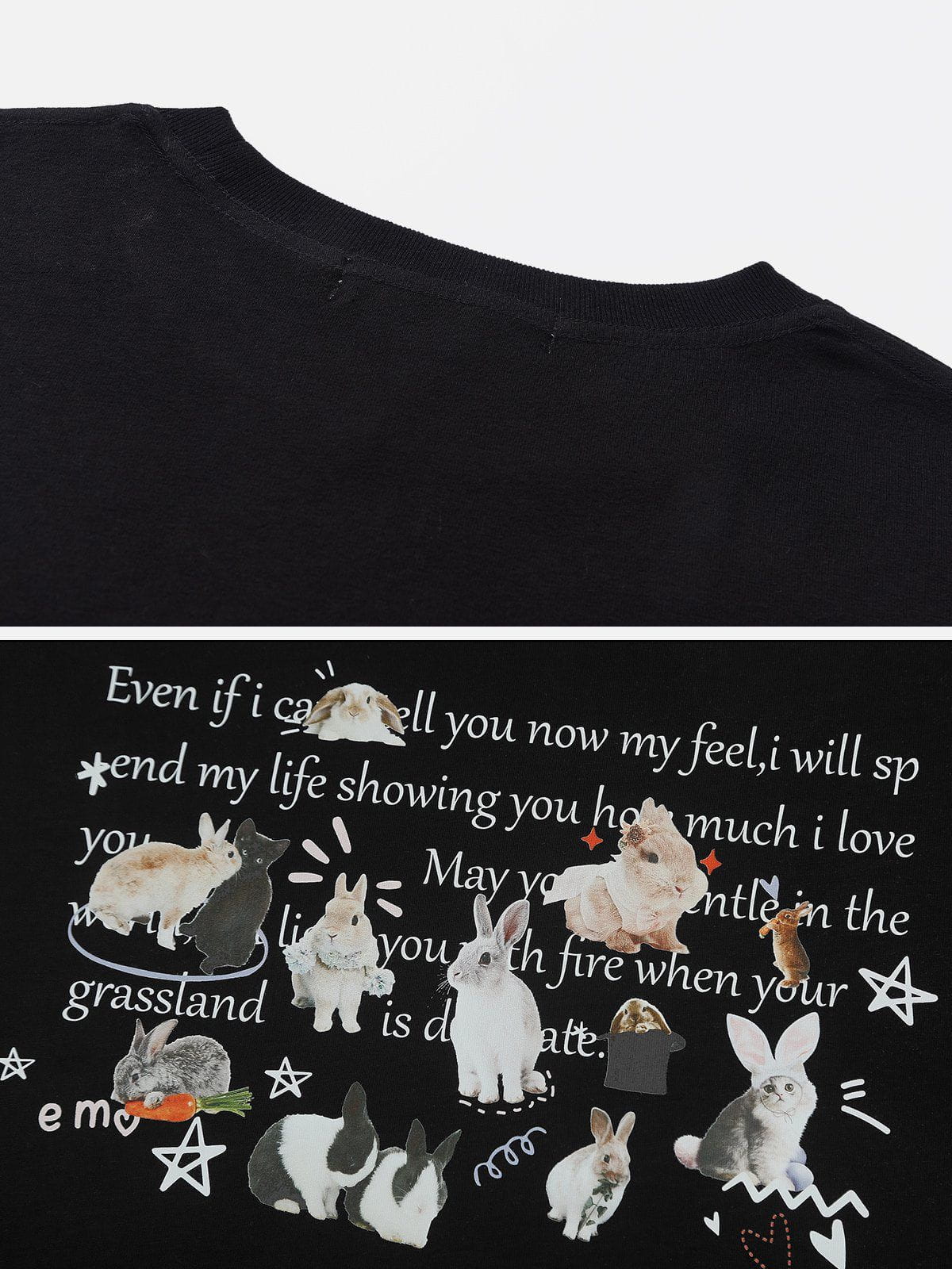 T-Shirt mit Retro-Cartoon-Hasen-Print
