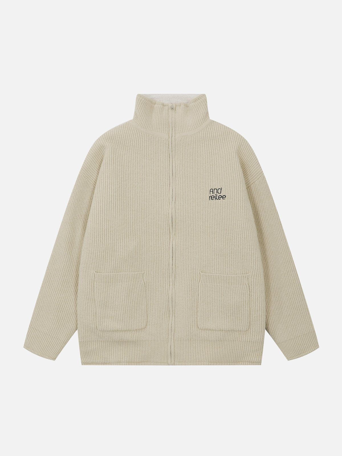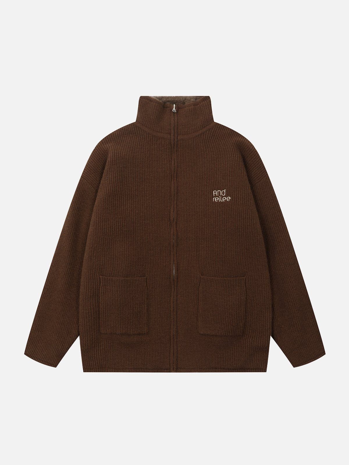 Wendbarer Strick-Wintermantel mit Stehkragen