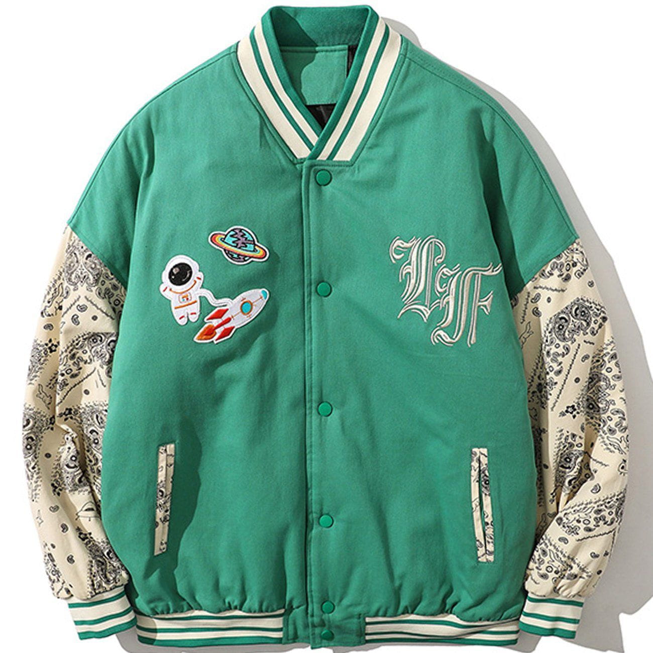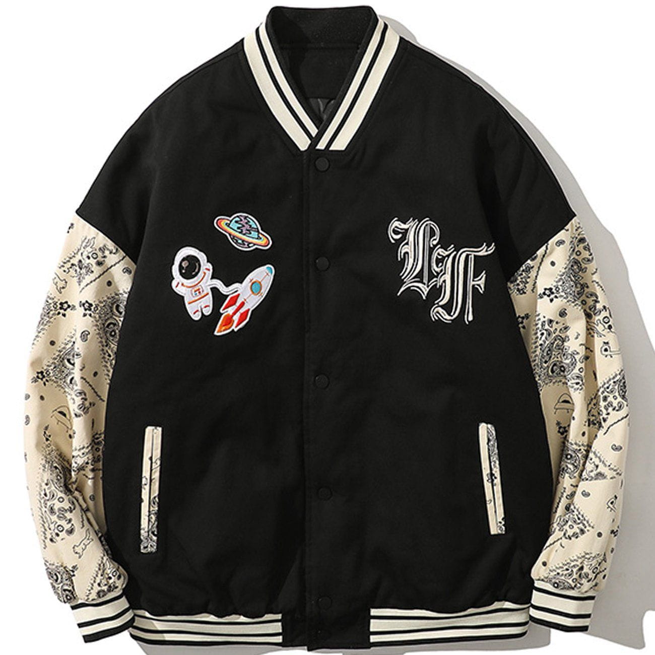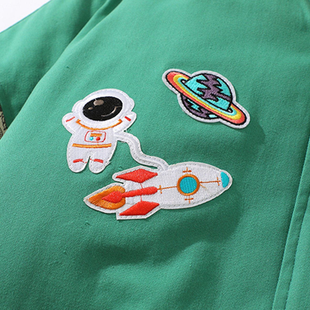Raketen-Astronauten-Stickerei-Patchwork-Bandana-Wintermantel