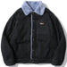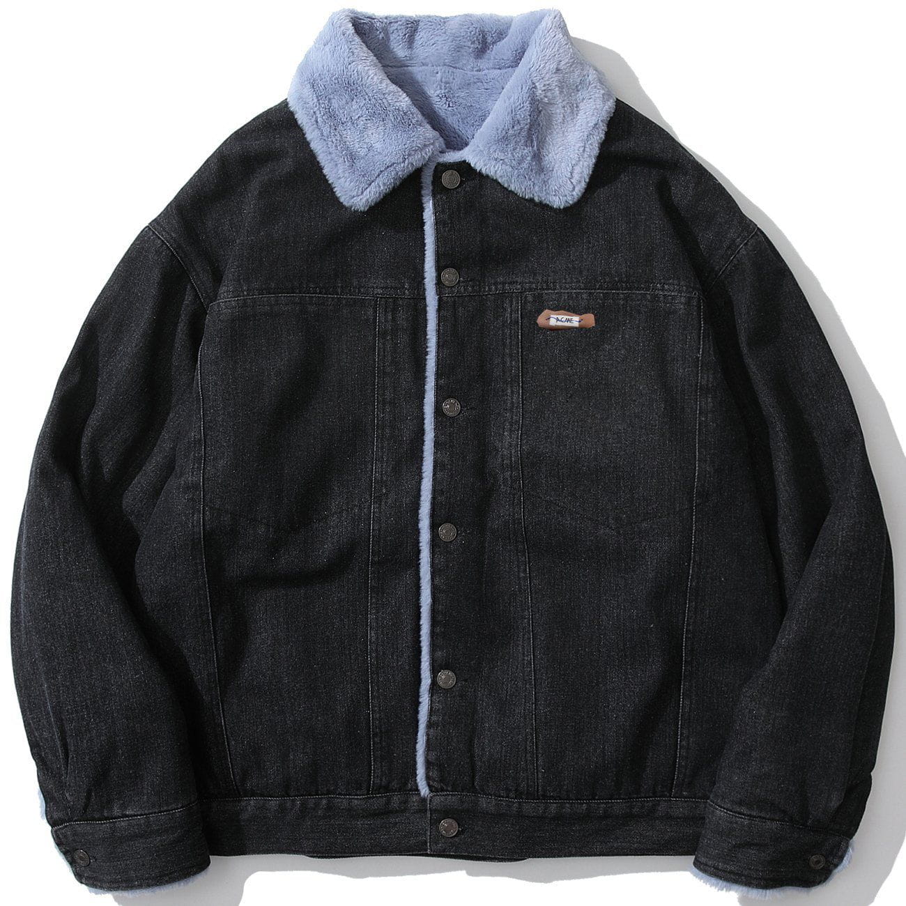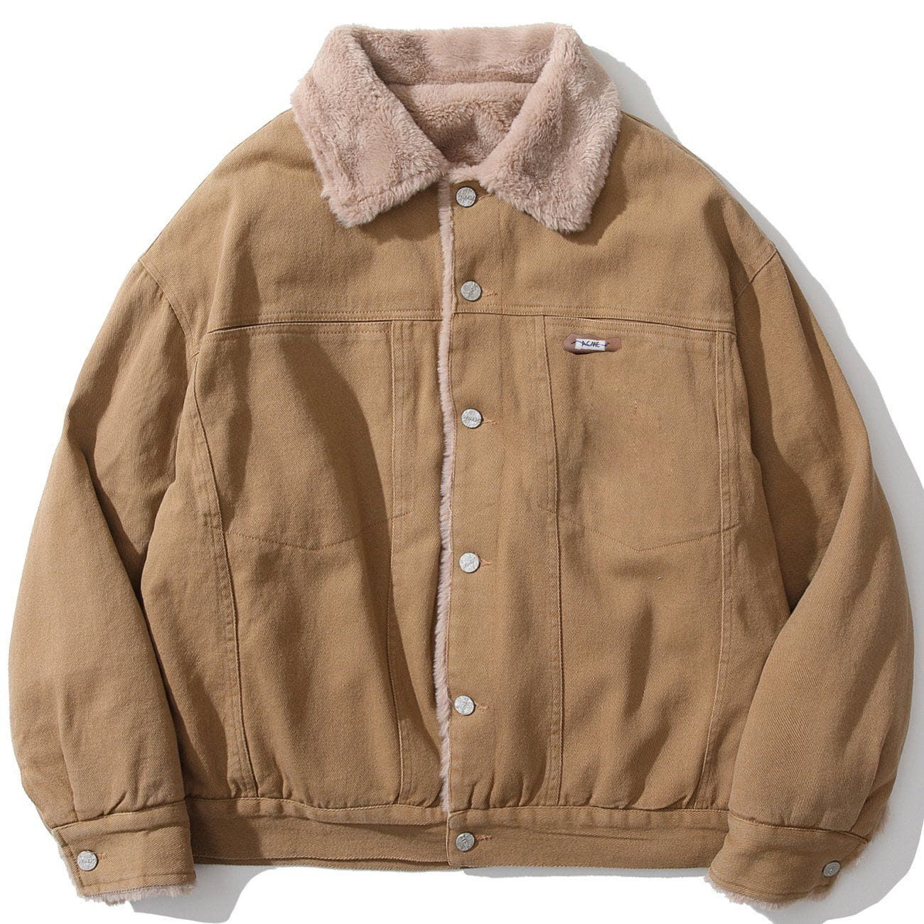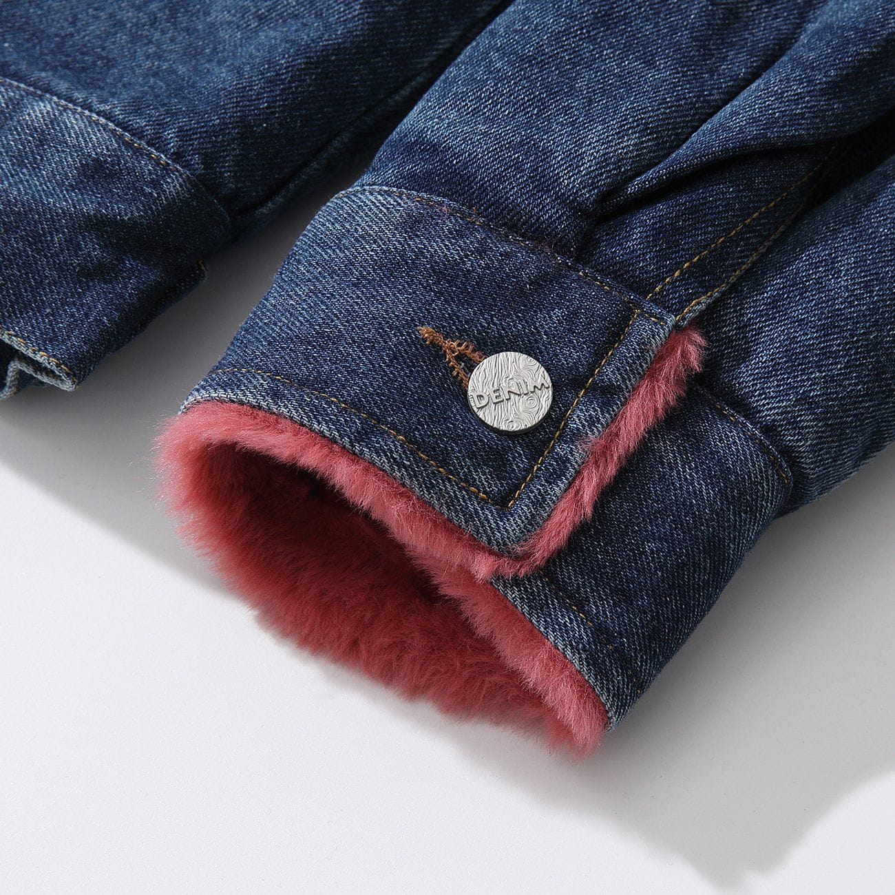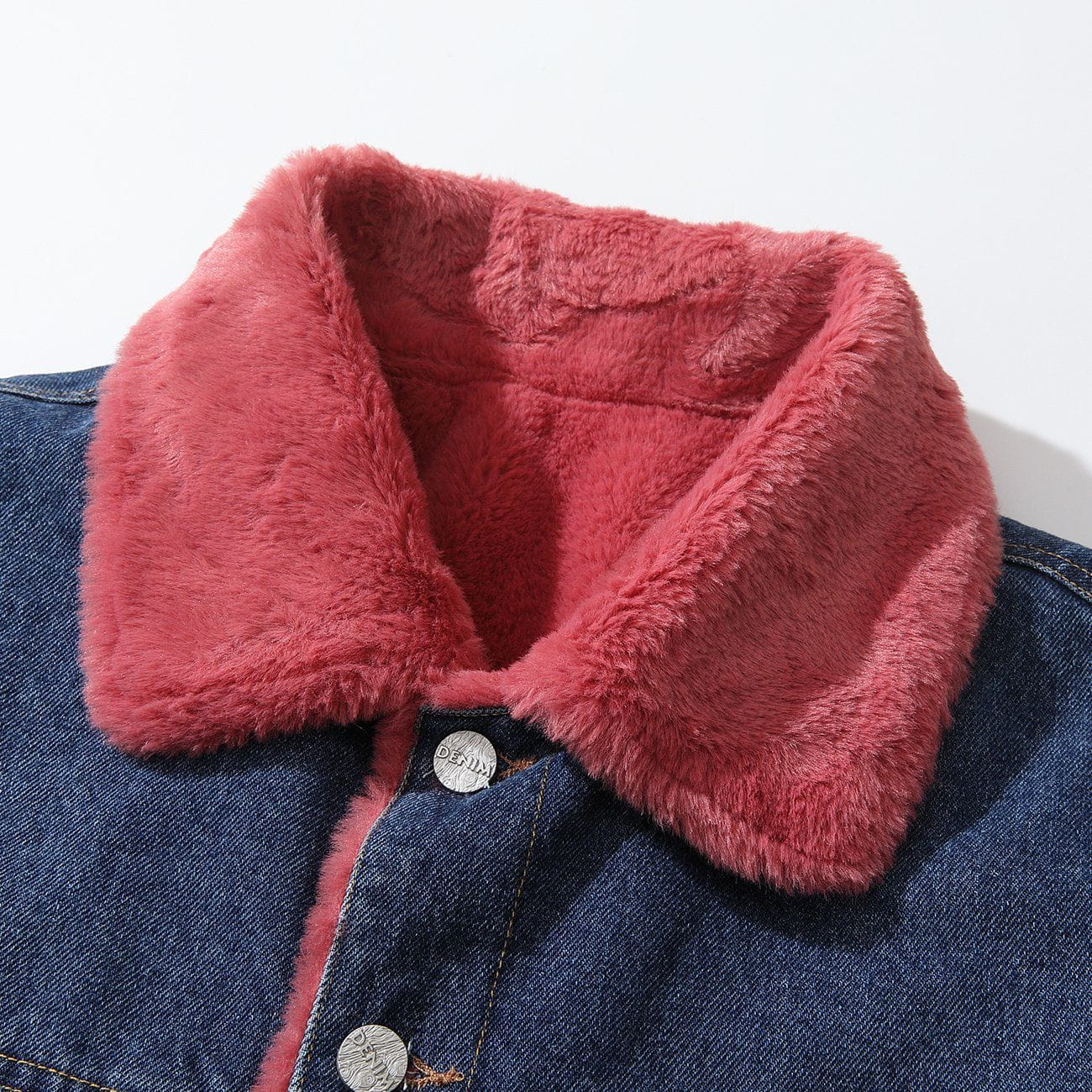 Einfarbiger Wintermantel aus Samt-Denim mit Polokragen