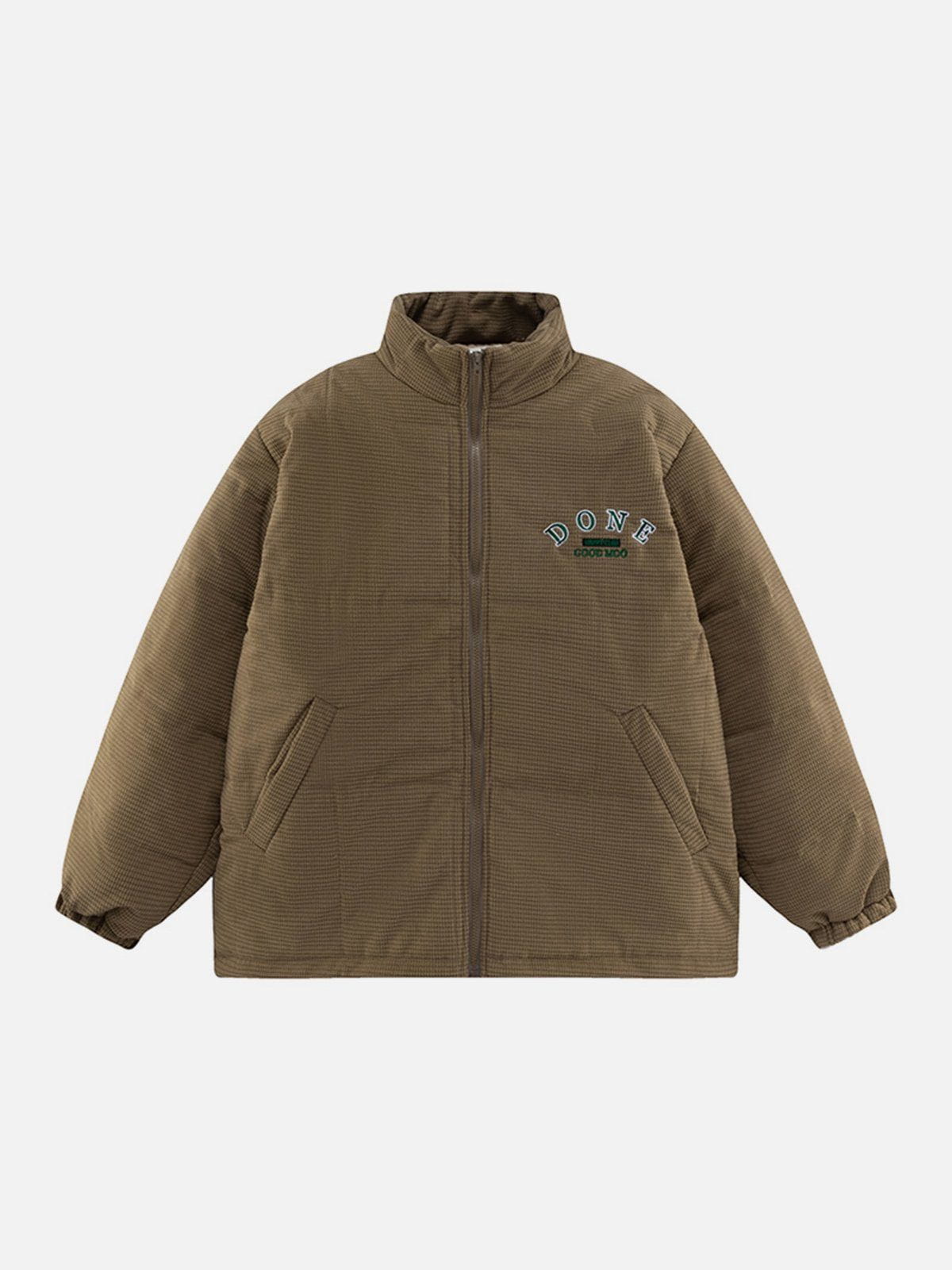 Wintermantel aus einfarbigem Cord mit Stickerei