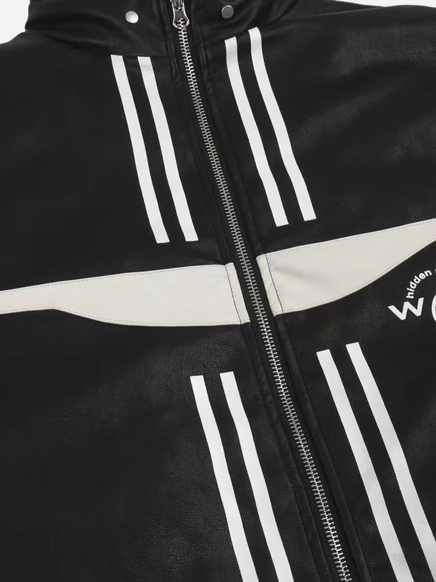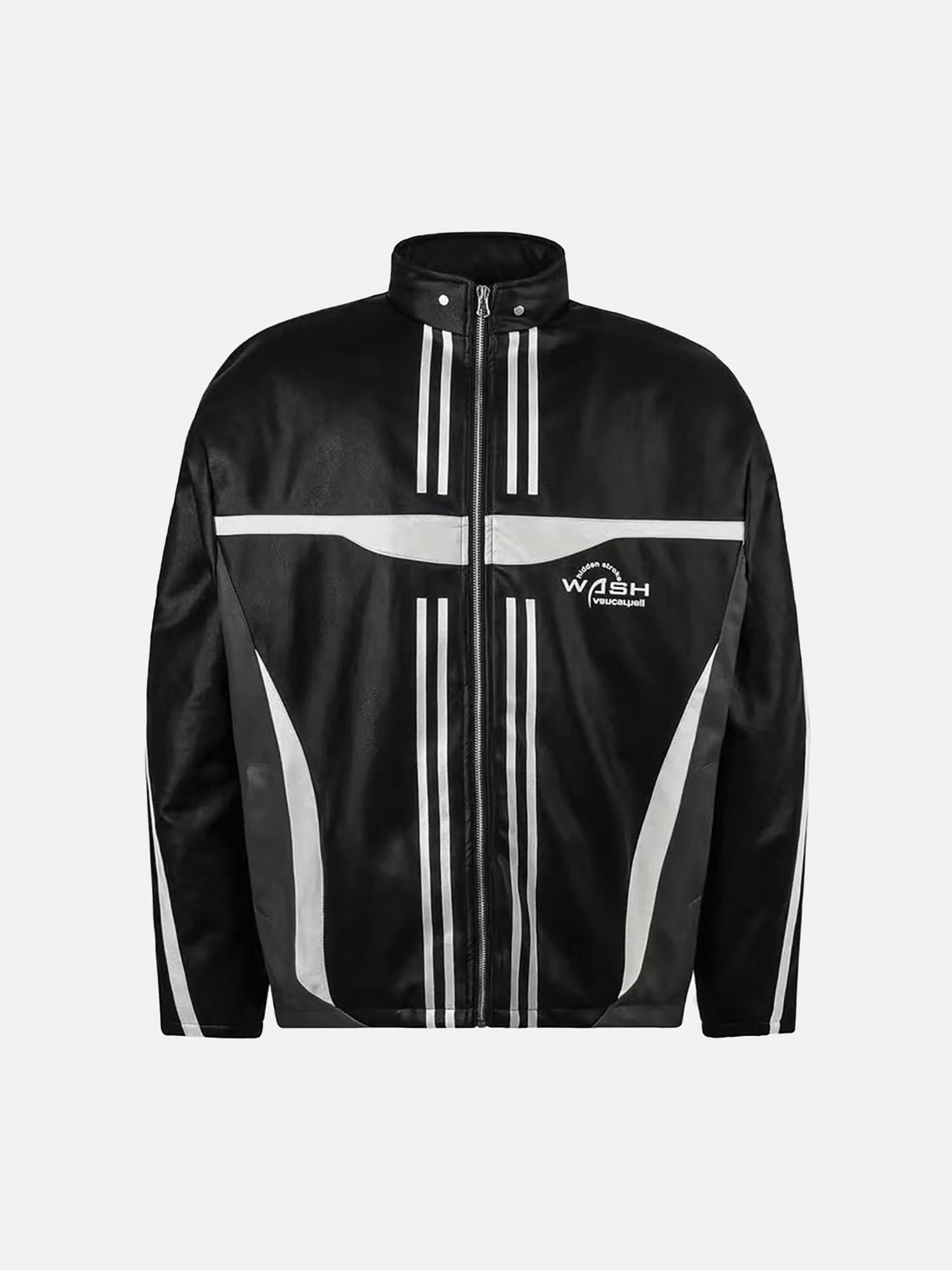 Motorrad-Rennjacke aus PU-Leder mit Stehkragen – 1941