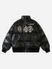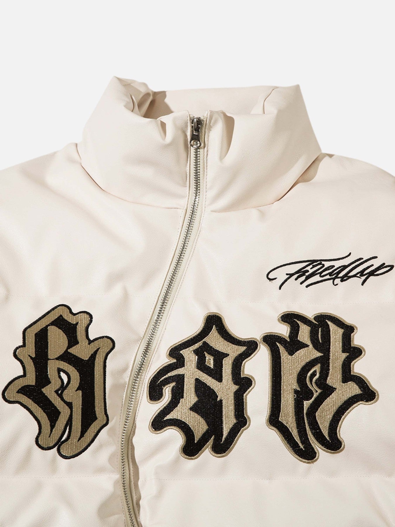 Baumwolljacke mit Street-Buchstaben-Stickerei und diagonalem Reißverschluss