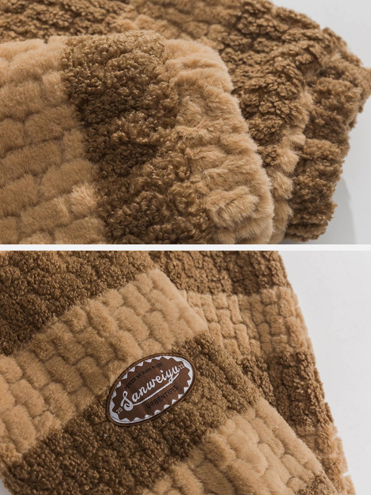 Sherpa-Mantel mit Streifen und beflockten Buchstaben
