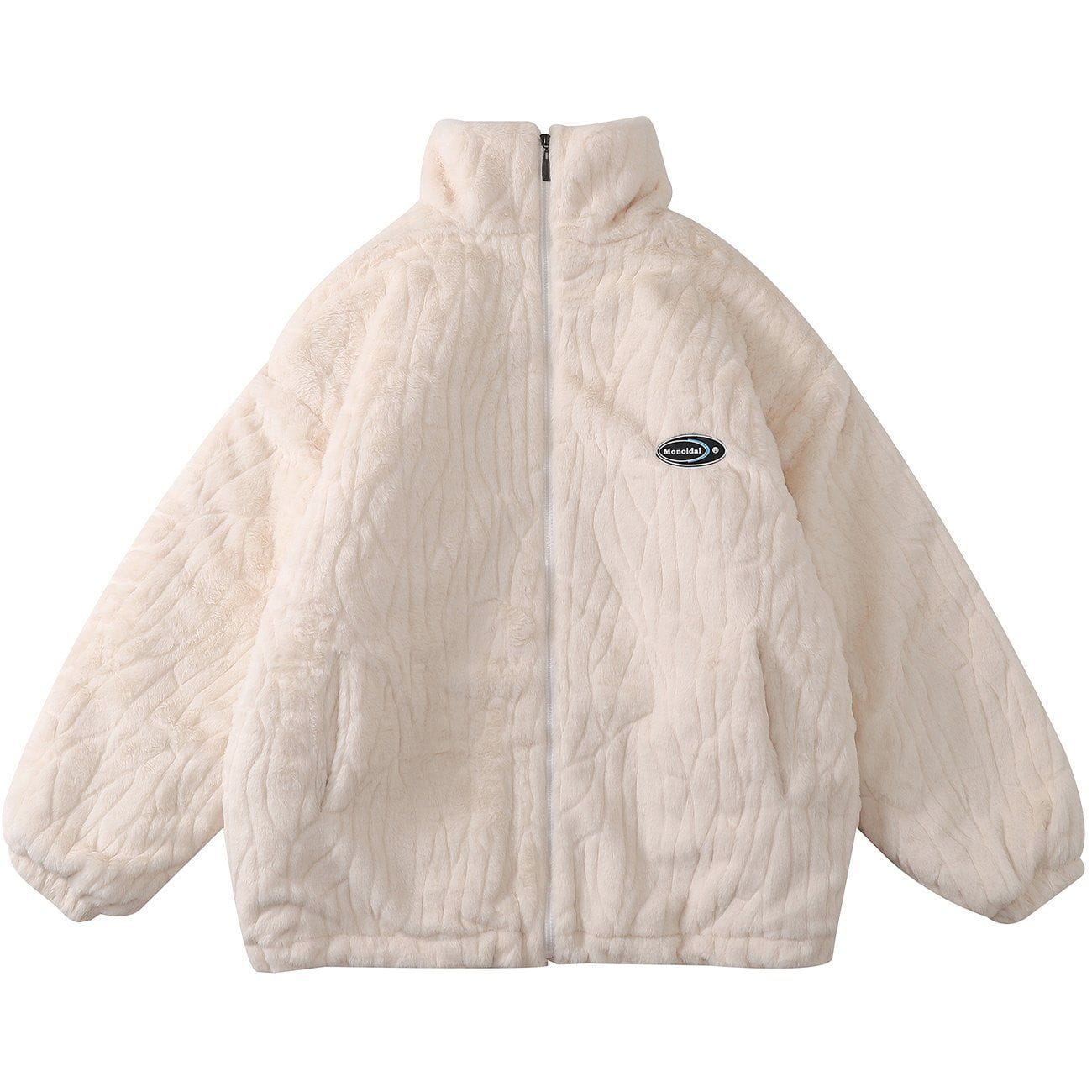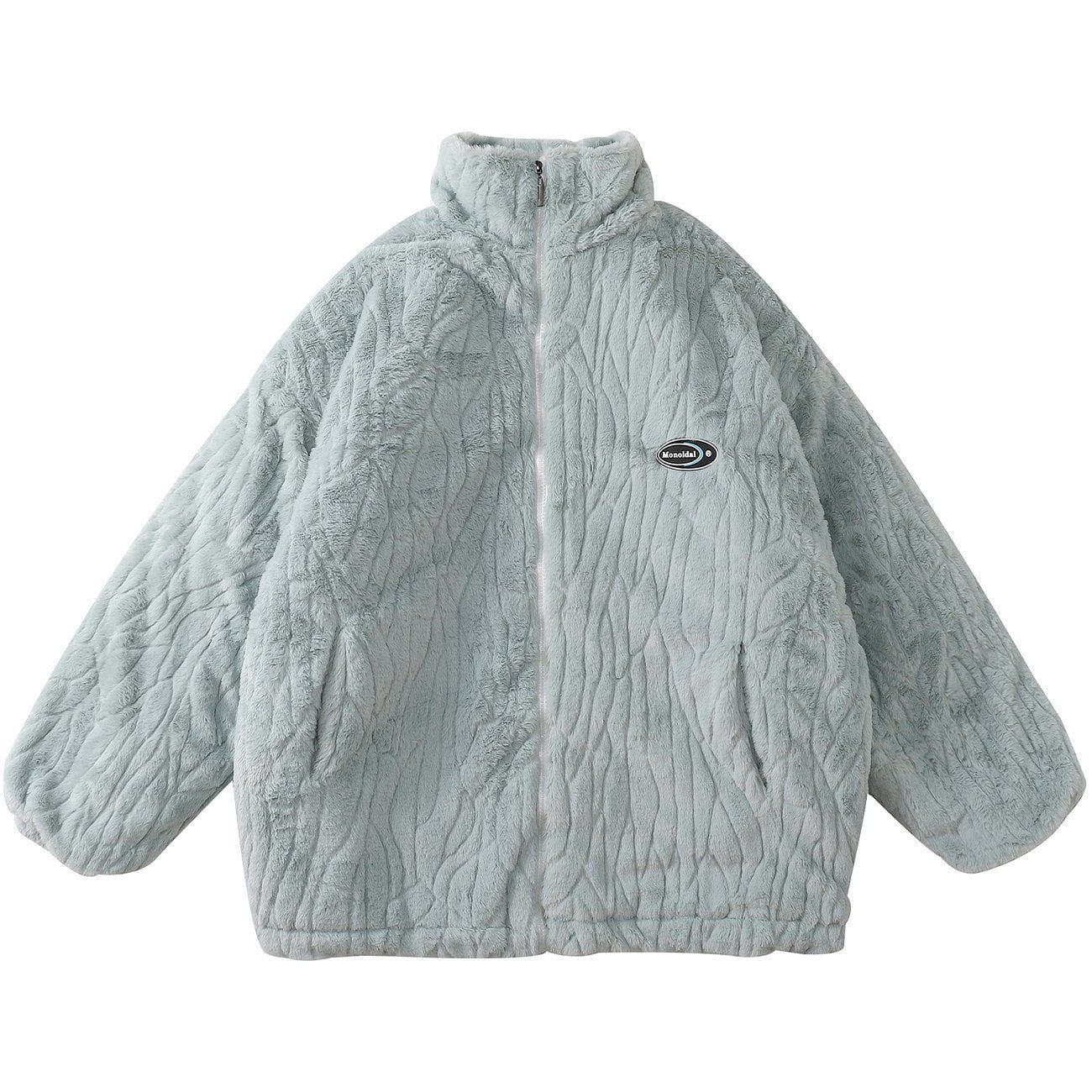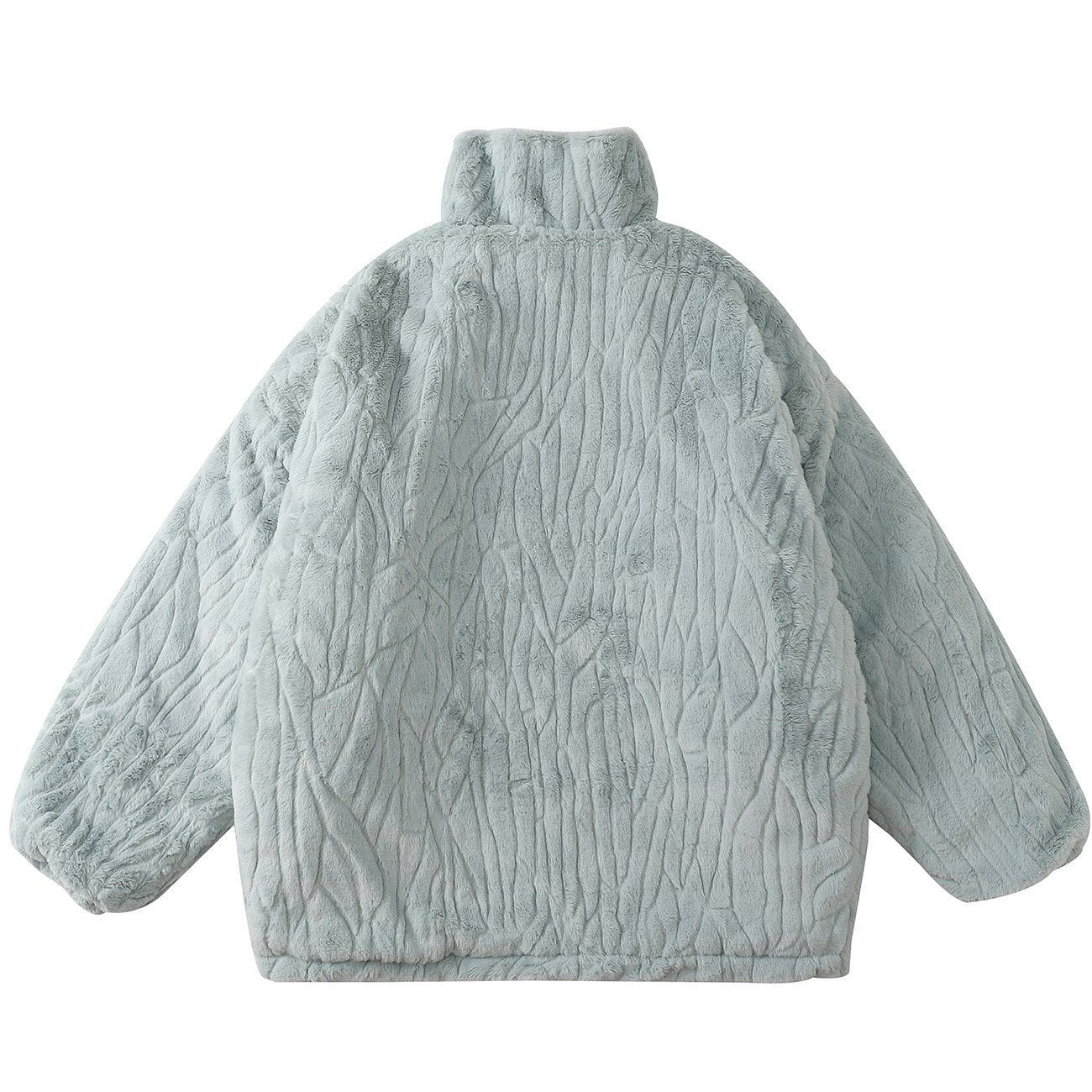 Wintermantel aus Plüsch mit Texturdruck und einfarbiger Farbe
