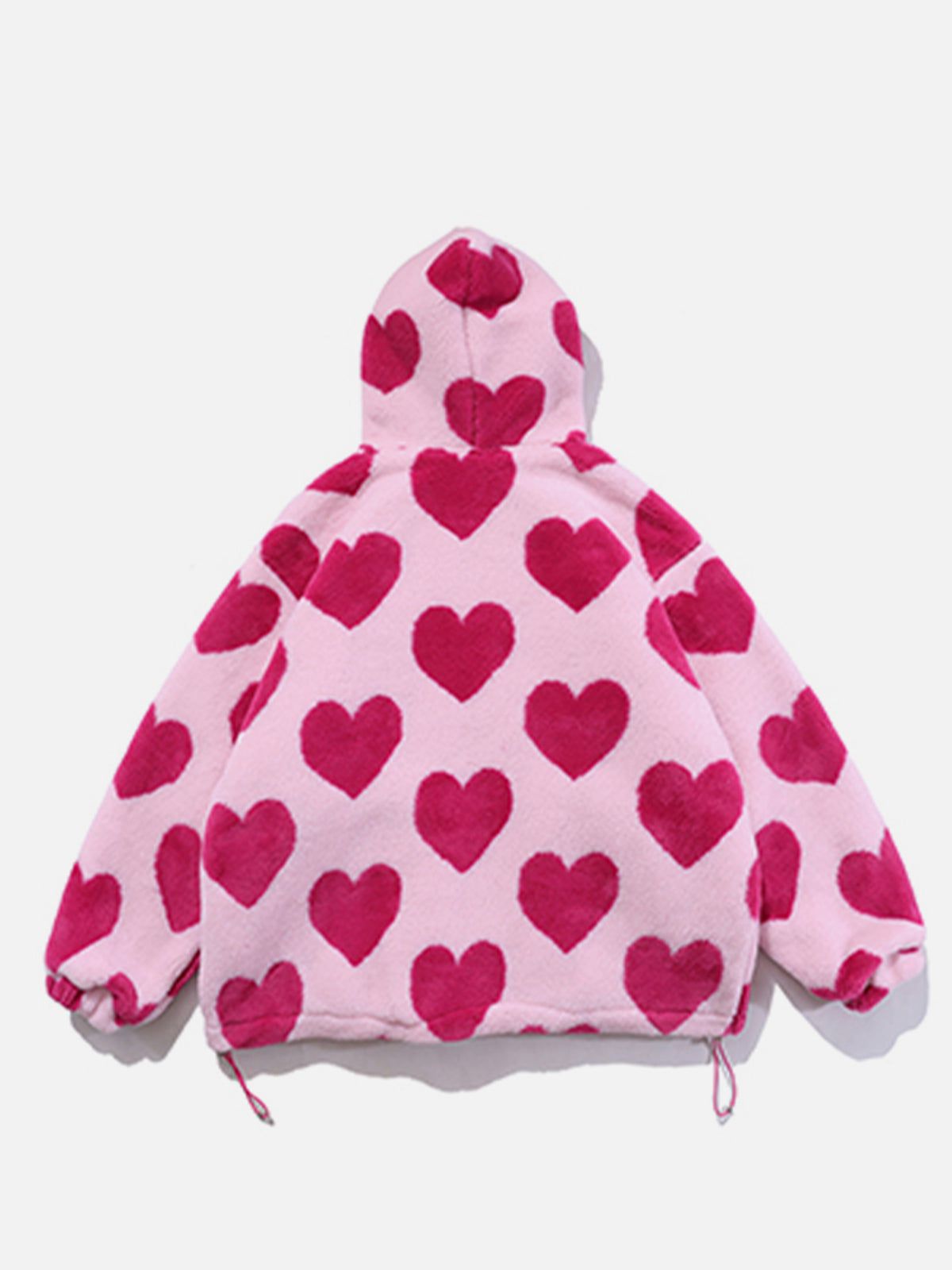 Oversize-Sherpa-Mantel mit Vintage-Herzmuster