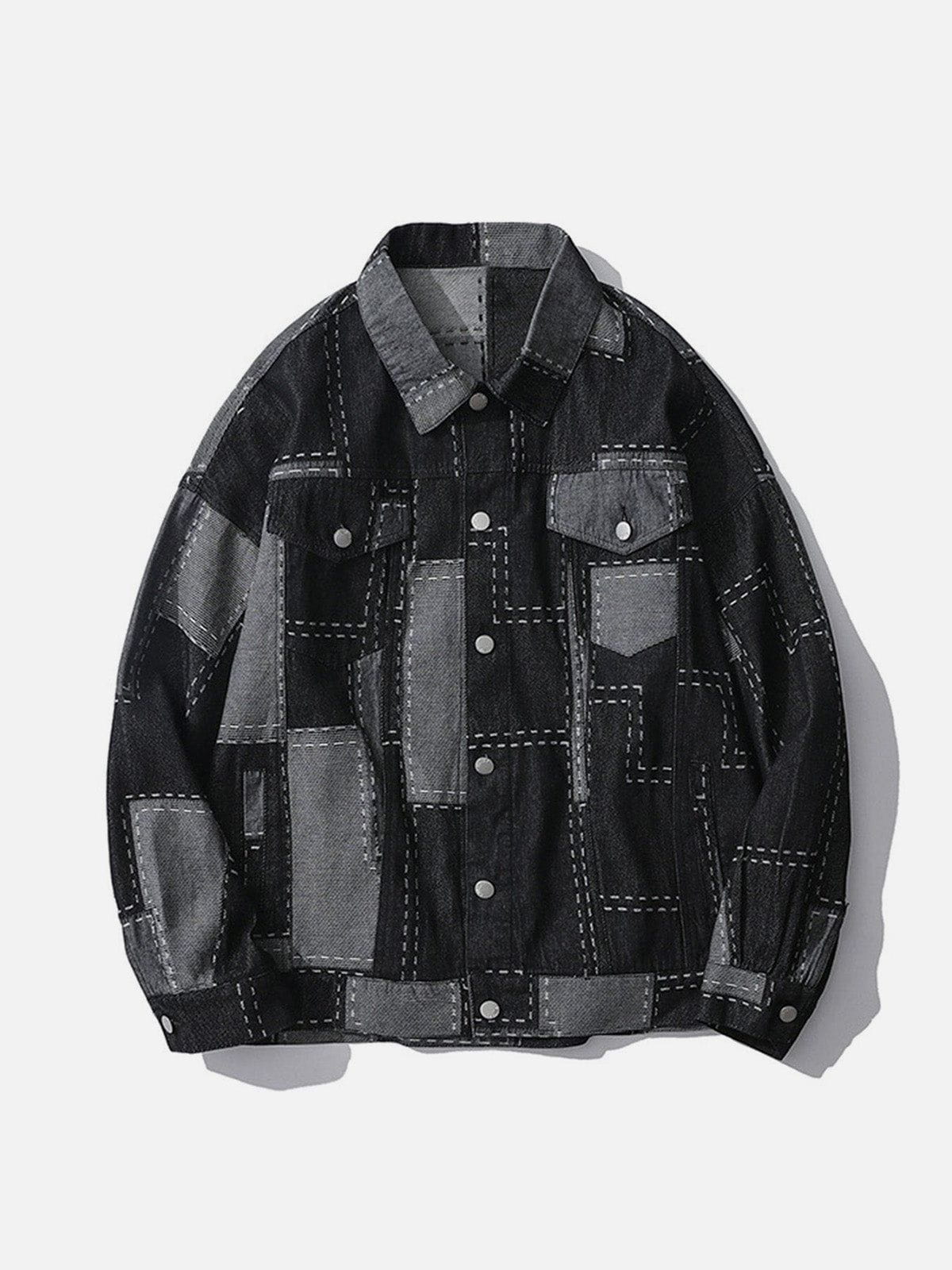 Vintage-Jeansjacke mit unregelmäßigen Nähten und Karomuster