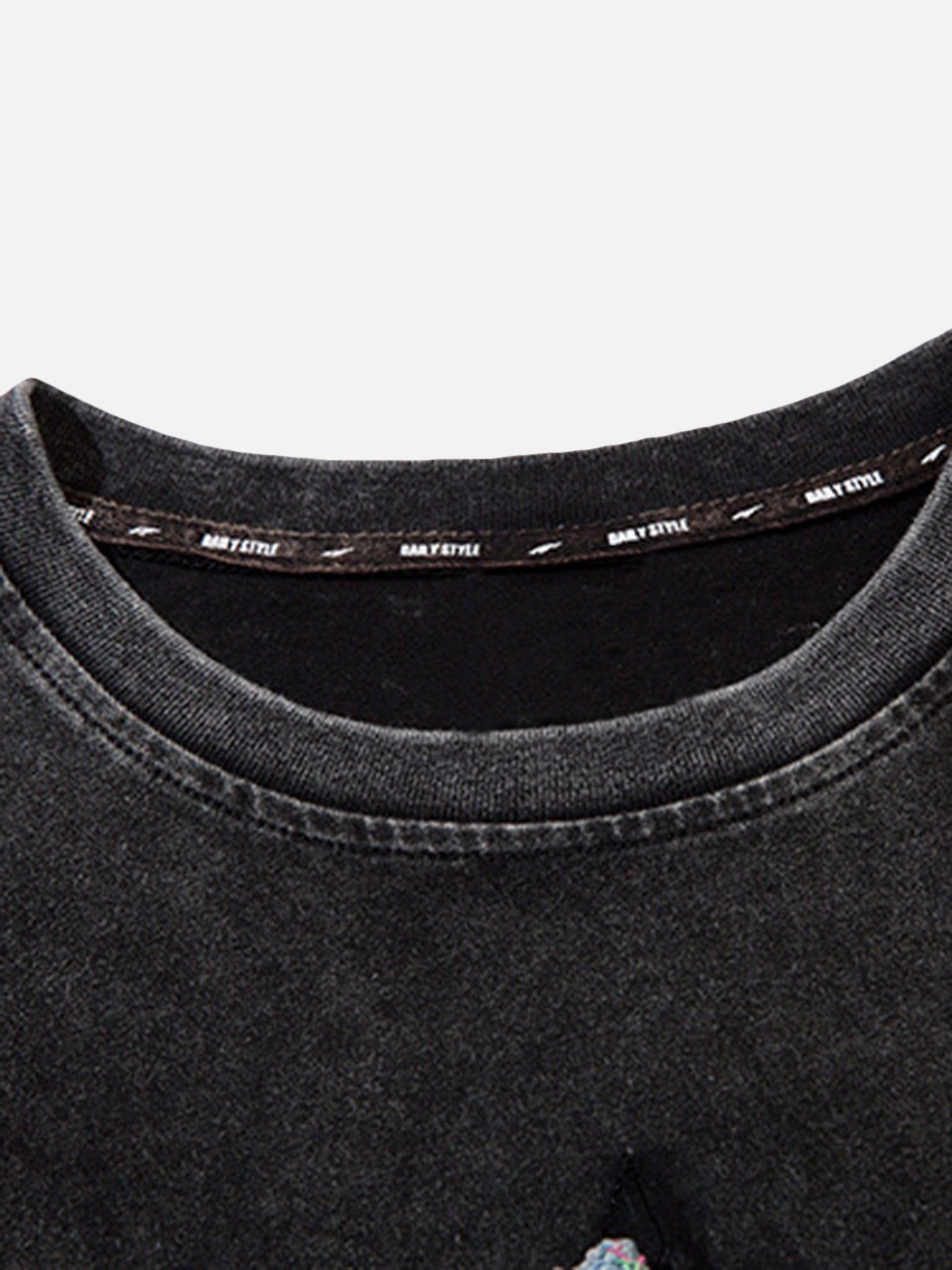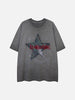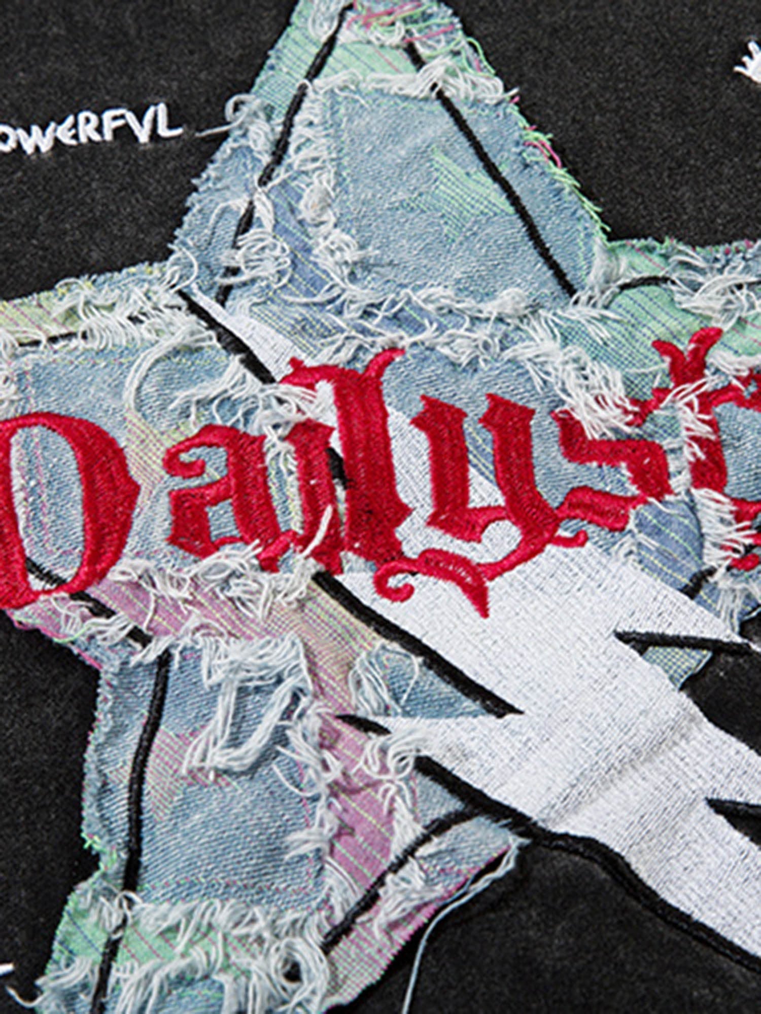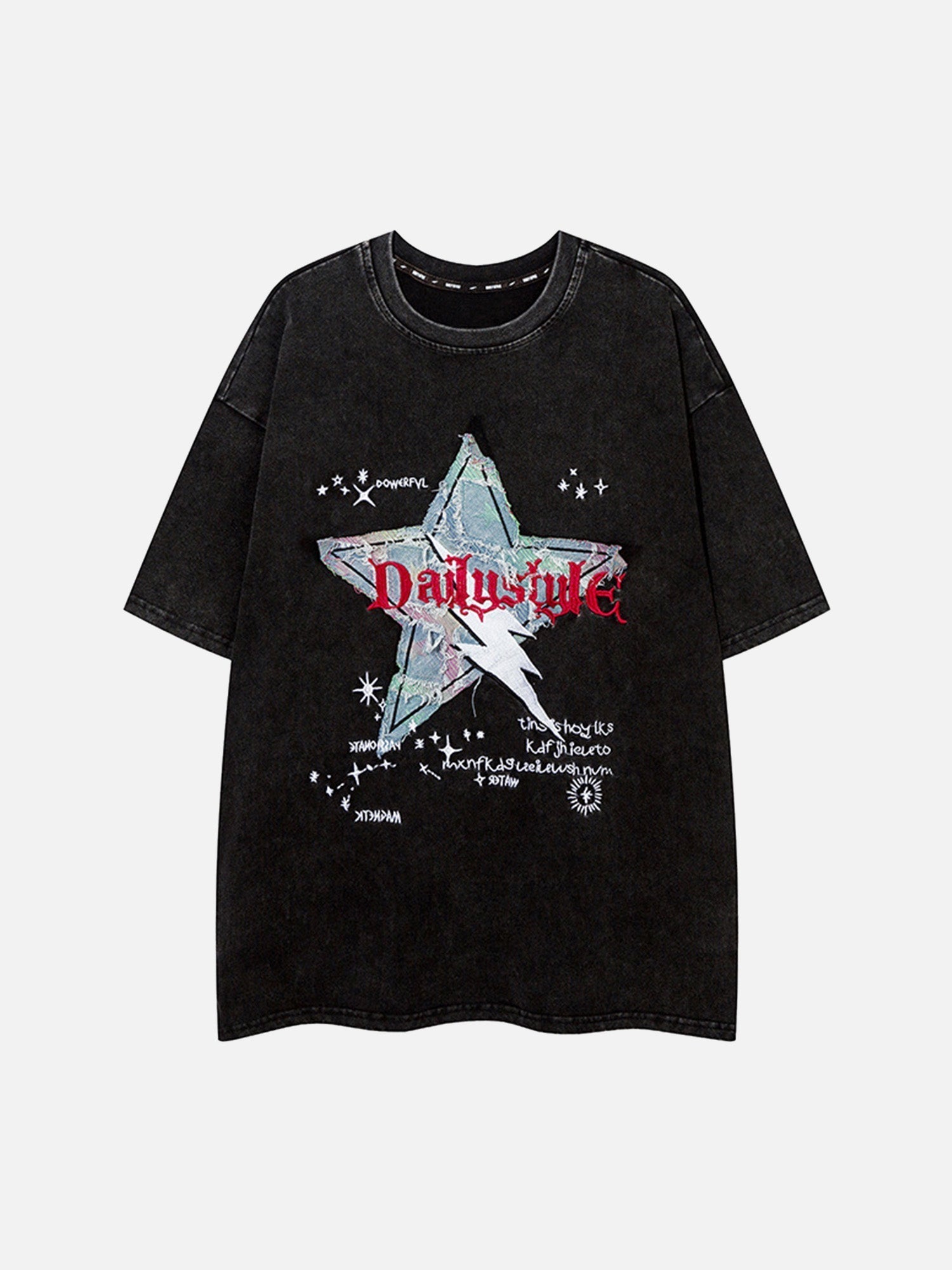 T-Shirt aus gewaschenem Distressed-Denim mit aufgesticktem Stern