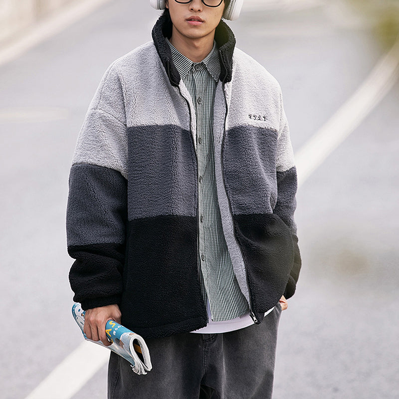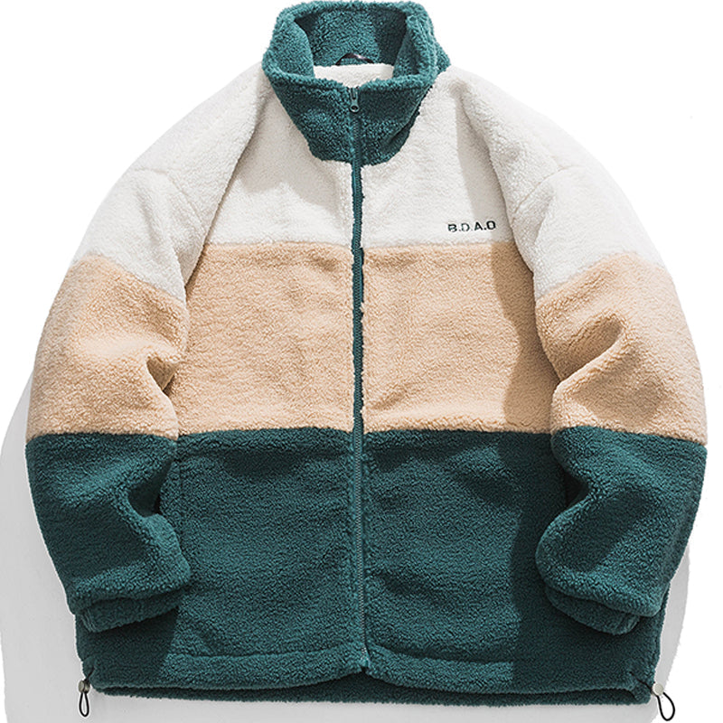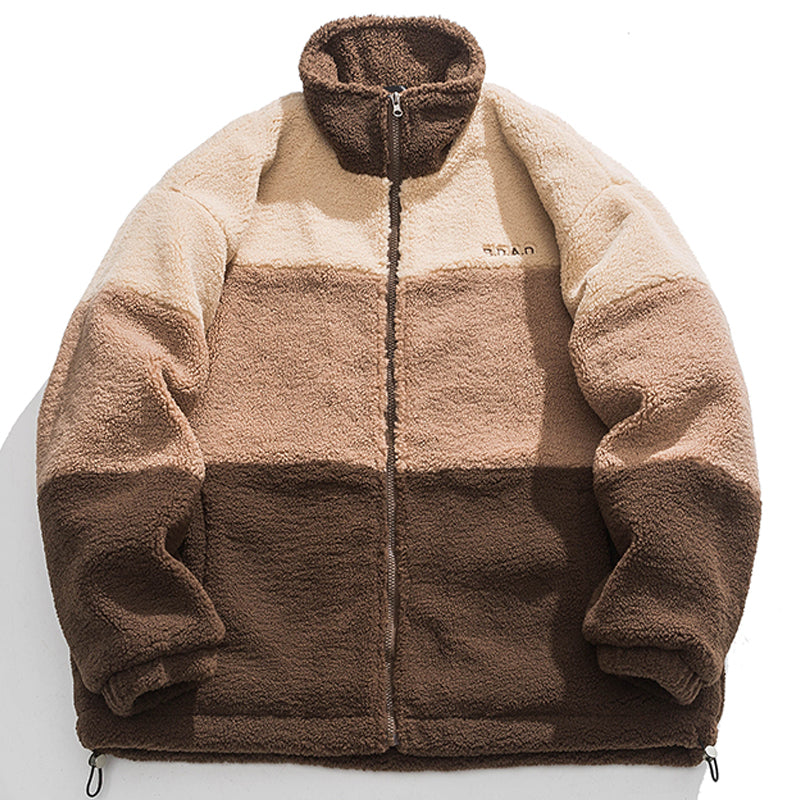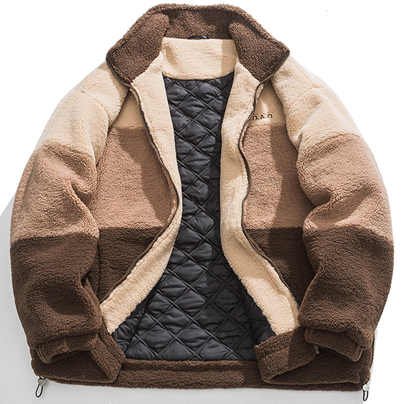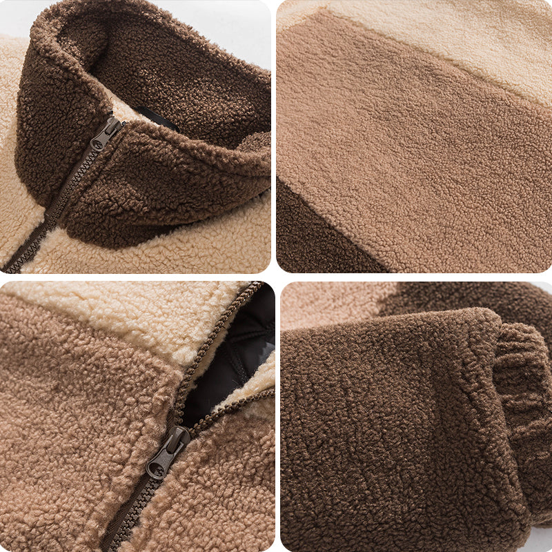Winter-Sherpa-Jacke mit Farbblock-Patchwork