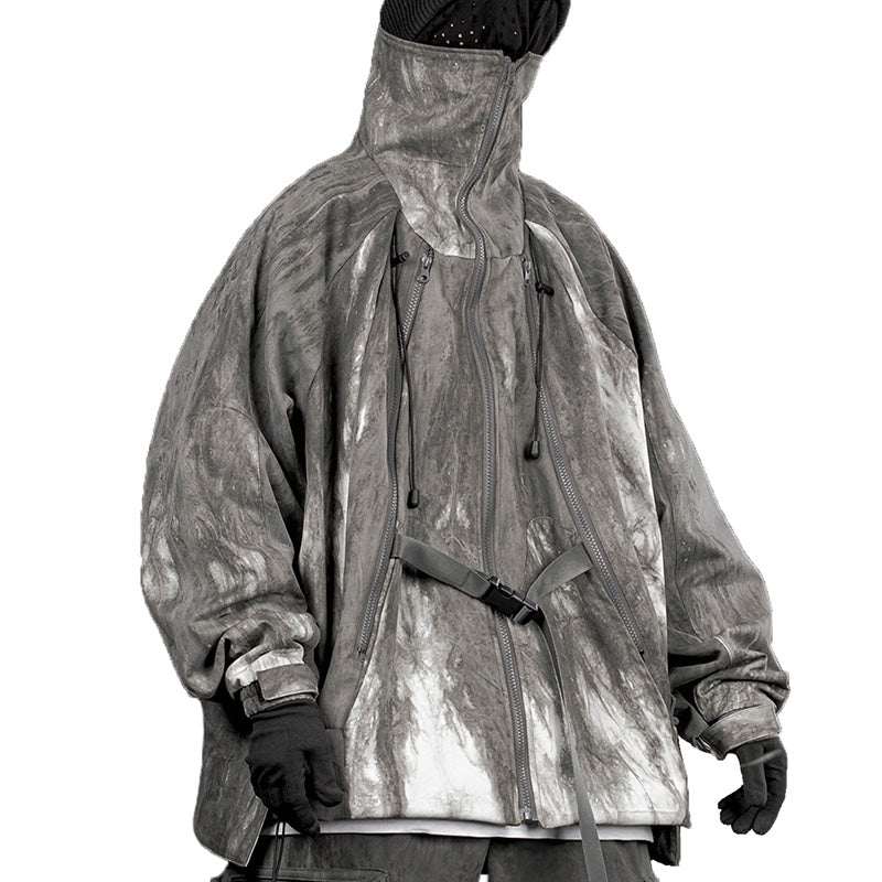 Techwear-Reversjacke mit Reißverschluss und Batikmuster
