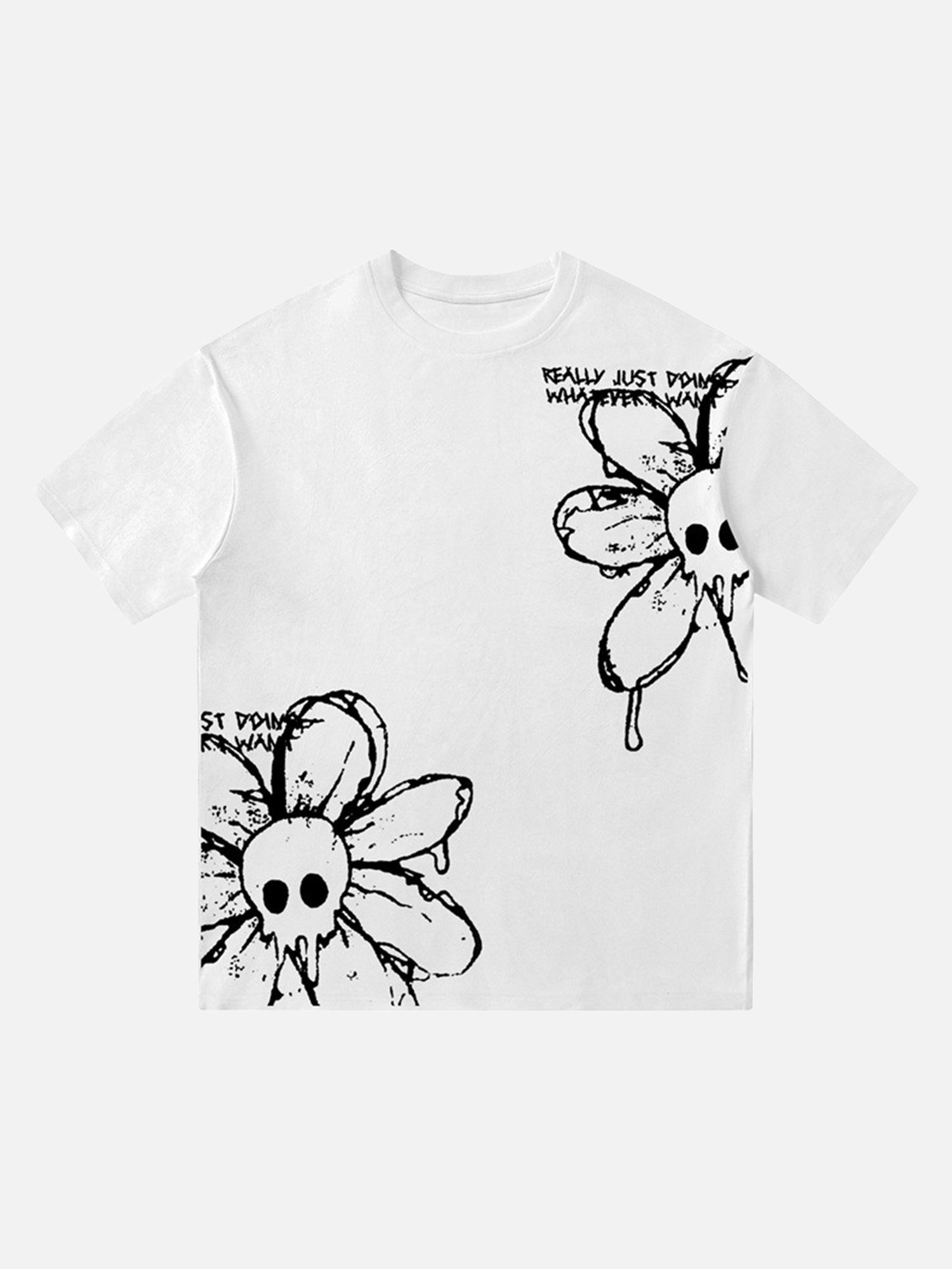 T-shirt rétro américain avec motif tête de mort et fleurs