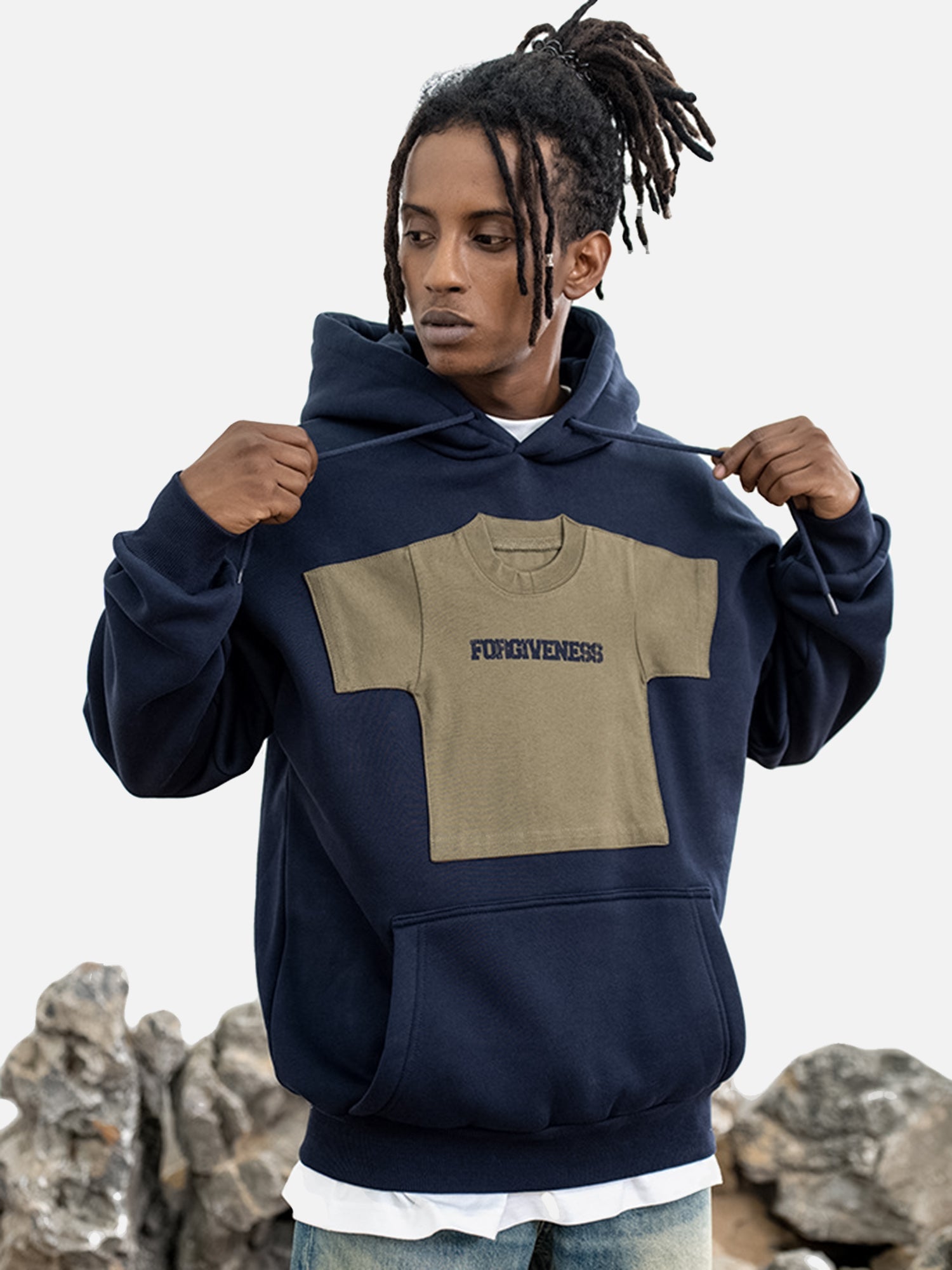 Sweat à capuche en velours patchwork rétro américain - 1929