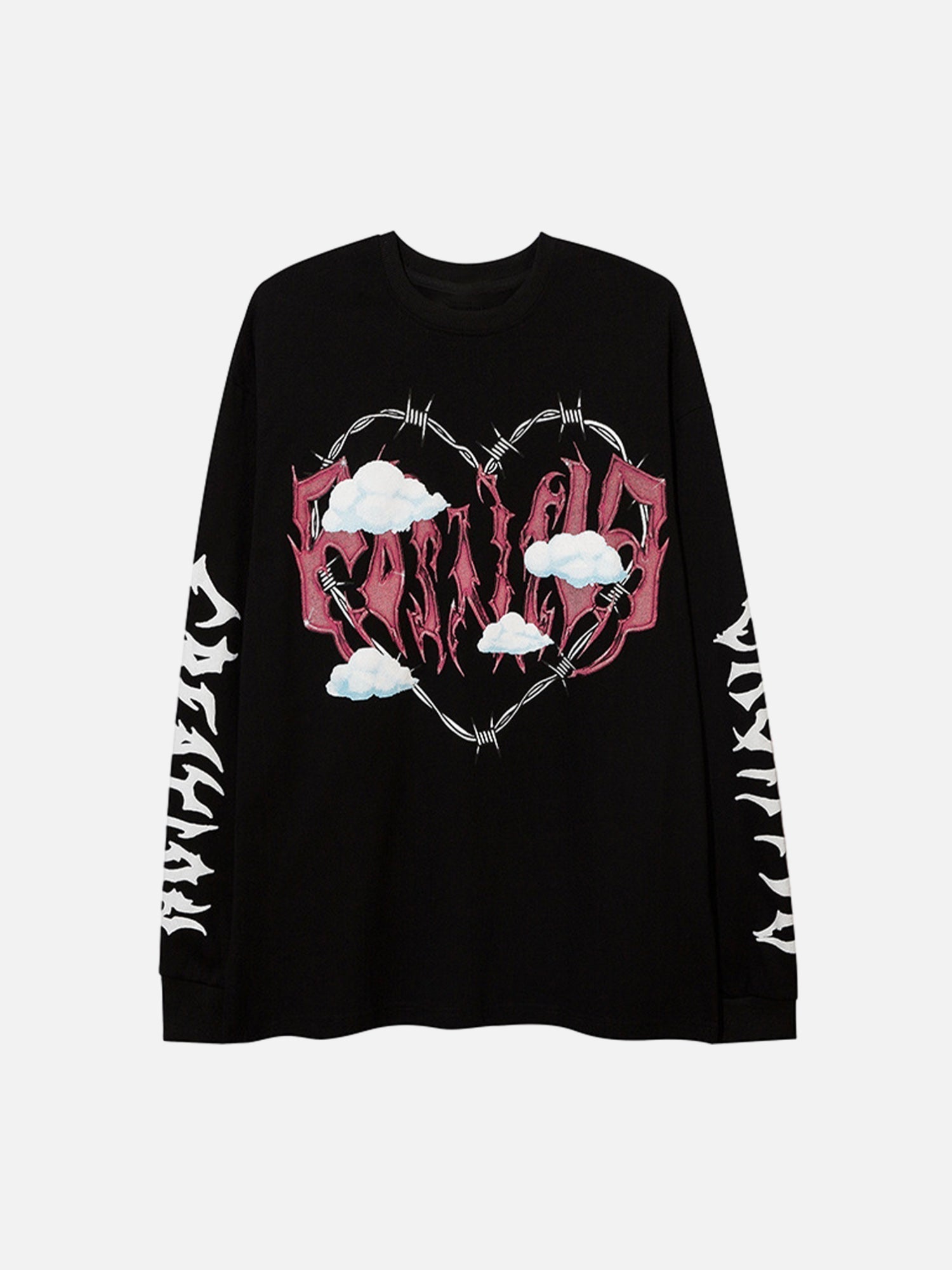 T-shirt à manches longues avec motif de lettres de marque américaine tendance