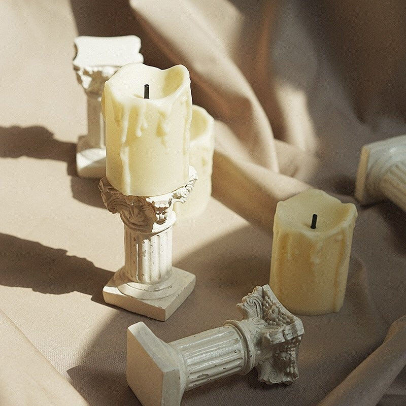 Apportez une touche de culture grecque antique à votre bureau avec ces piliers de bougies antiques. Idéal avec des bougies LED anciennes.