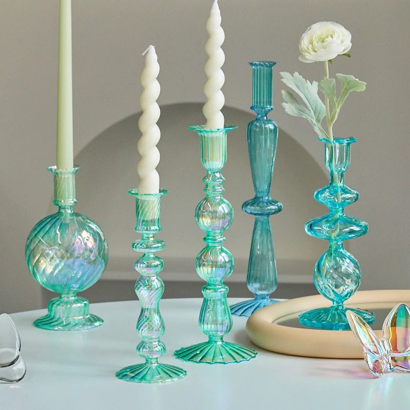 Ajoutez une touche de bleu aqua à votre pièce avec ces bougeoirs en verre faits main. Ils scintilleront au soleil et embaumeront votre pièce d'une ambiance bleue éclatante. Choisissez-en 2 à 4 pour un résultat optimal et complétez votre ensemble de bougeoirs esthétiques !