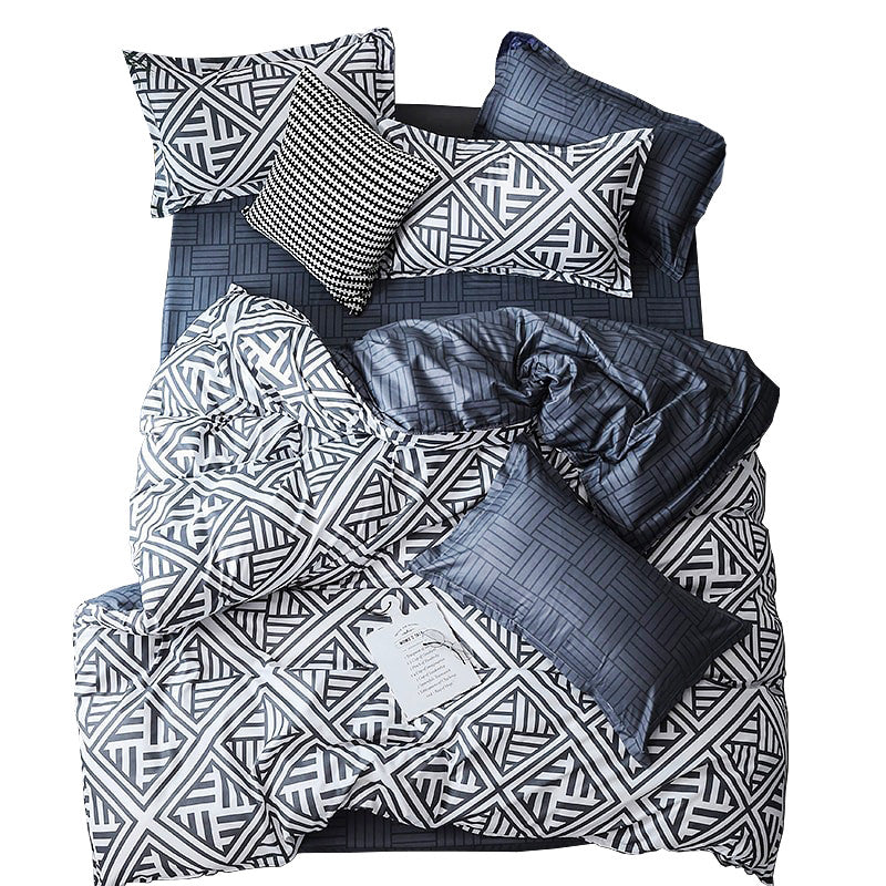 Parure de lit 3 pièces à imprimé géométrique noir et blanc. Idéale pour une décoration bohème/minimaliste.