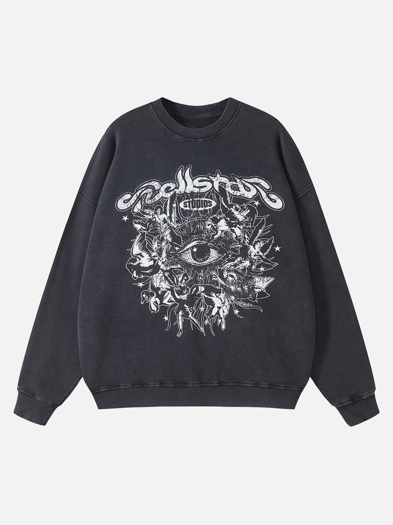 Sweat-shirt ample à col rond et effet usé en batik - 1898