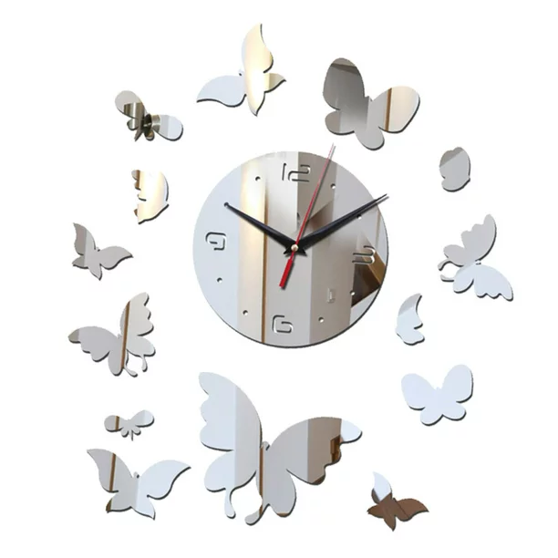 Découvrez l'Horloge Papillon : une horloge argentée d'une beauté époustouflante au design lumineux et aérien. De minuscules papillons autocollants en acrylique flottent sur le cadran, ce qui en fait un élément décoratif charmant pour n'importe quelle pièce ! Profitez de la beauté de la nature et soyez ponctuel. (C'est scientifique !)
