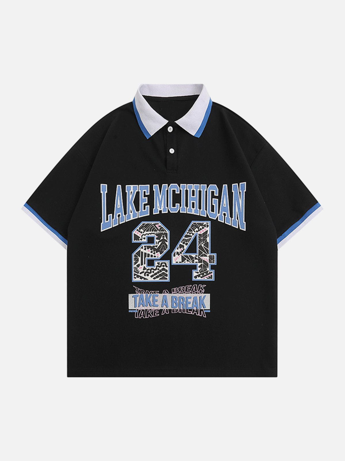 T-shirt à col polo imprimé numérique contrasté