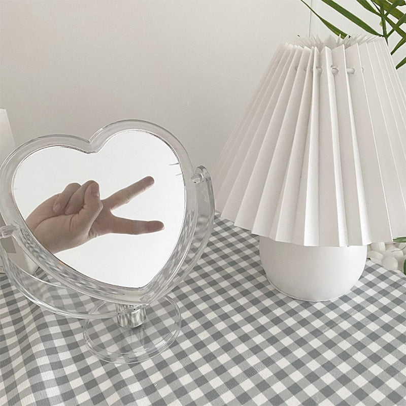 Joli miroir de maquillage en forme de cœur. Accessoire idéal pour décorer votre bureau ou votre table, ou pour ajouter une touche esthétique et mignonne à votre chambre. Un incontournable pour les adeptes du style années 2000 ou des filles douces !