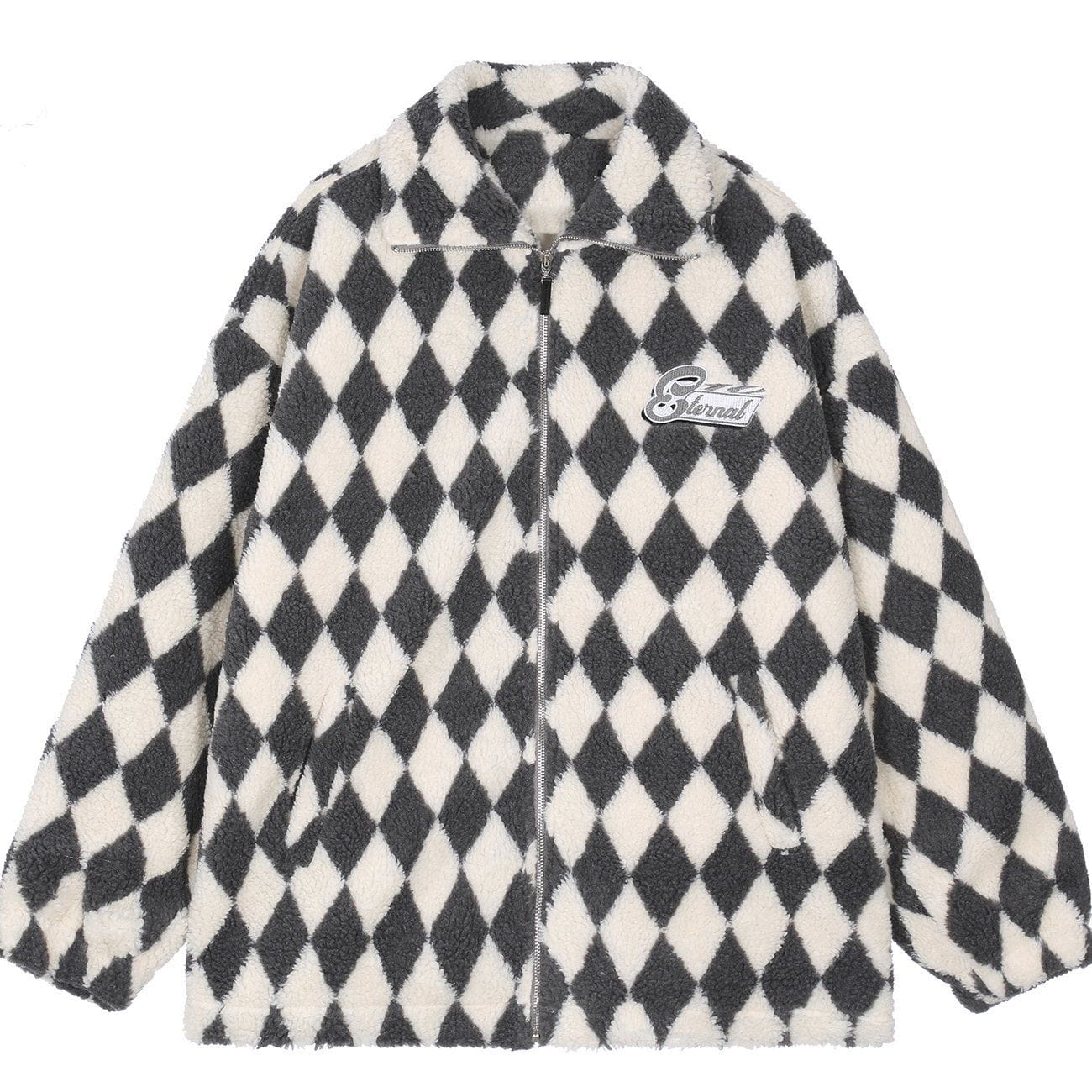 Manteau d'hiver en sherpa avec broderies Diamond Grid Patch