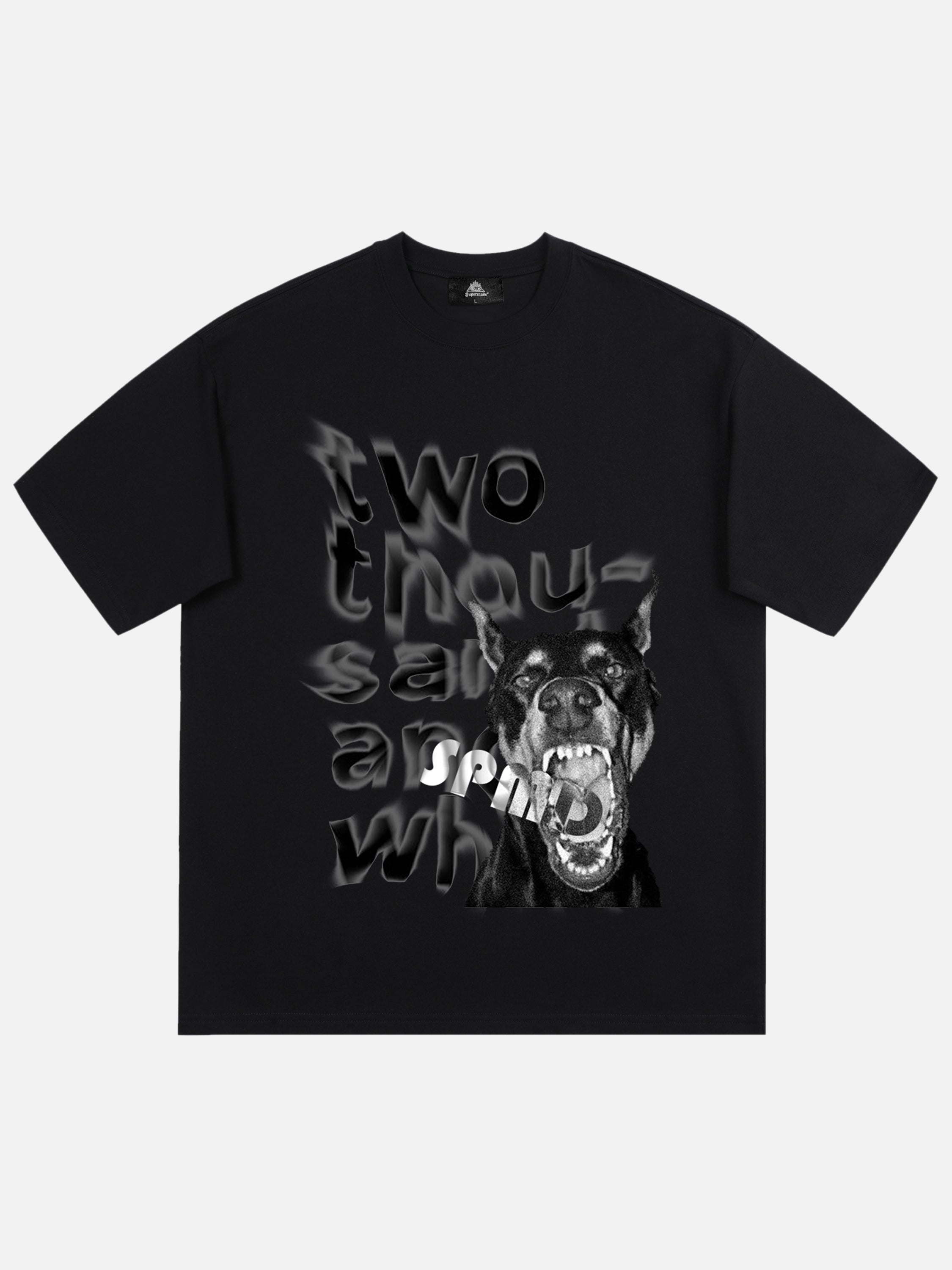 T-shirt imprimé chien Doberman avec des lettres graffiti amusantes