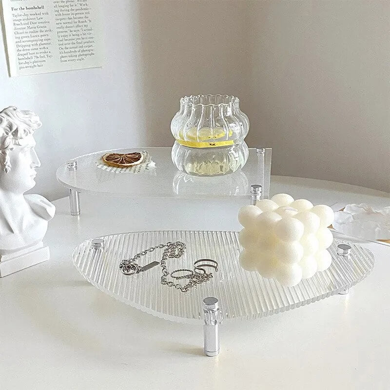 Organisez votre bureau avec style grâce à ce plateau décoratif rainuré en acrylique ! Ce magnifique plateau en acrylique transparent arbore des rainures, ce qui en fait l'accessoire idéal pour votre coiffeuse ou votre table de chevet. Exposez vos bijoux préférés, servez des desserts ou utilisez-le comme décoration de bureau.