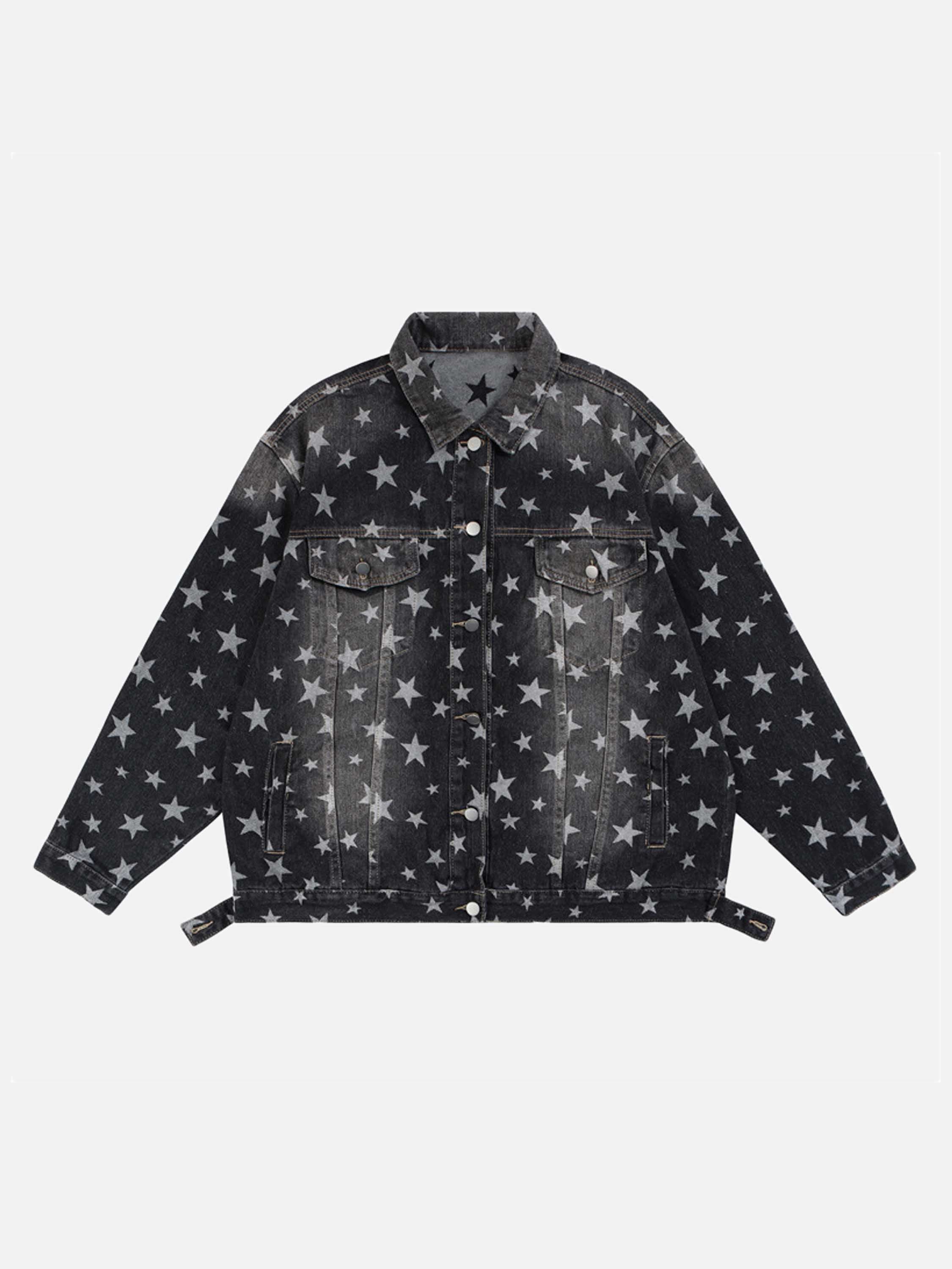 Veste en jean vintage délavée à imprimé pentagramme High Street Niche Design -1433